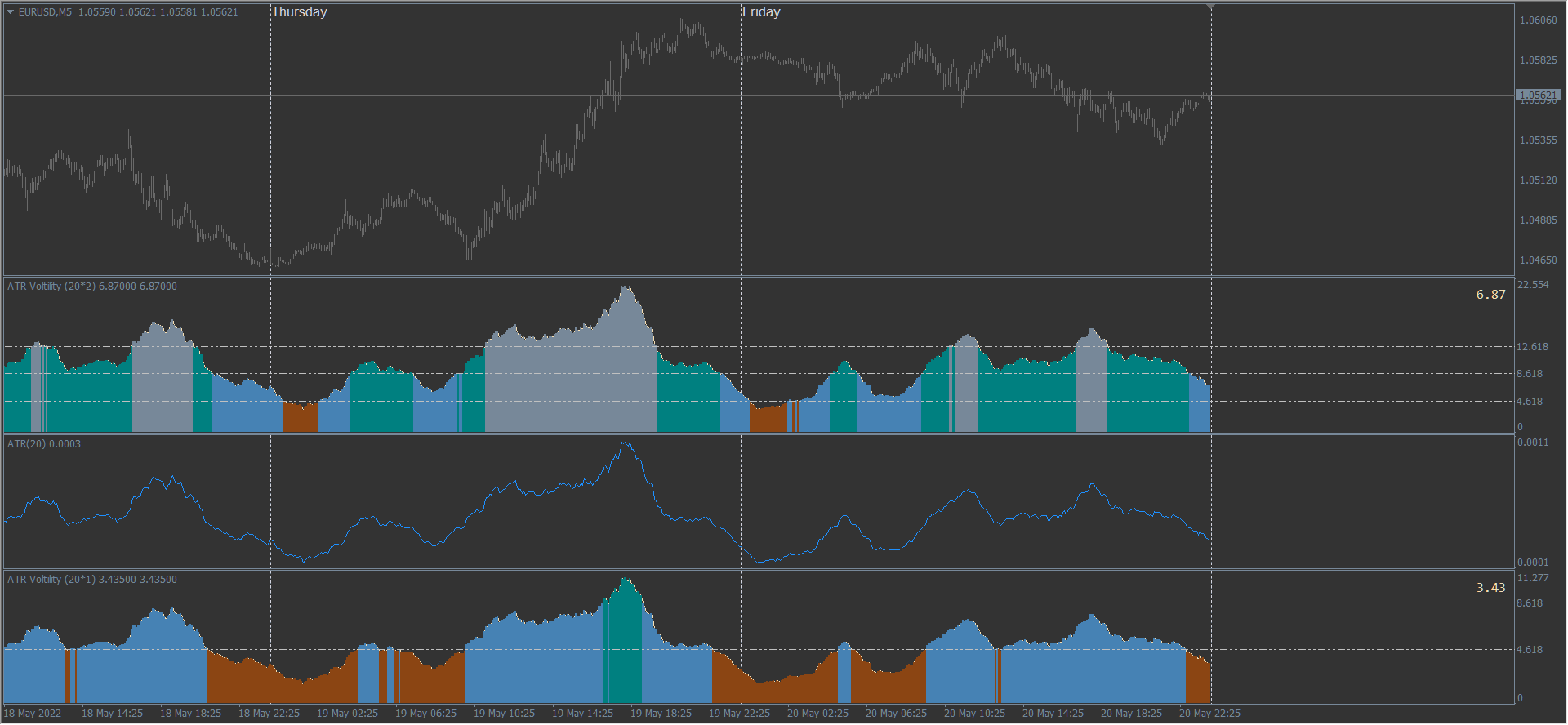 What it does is it takes the ATR (say 14 periods) and it multiplies the ATR Value by 10000 for 5 digit pairs, 100 for 3 digit pairs etc. This way, we get more human-readable values. You can say that the ATR values are magnified.