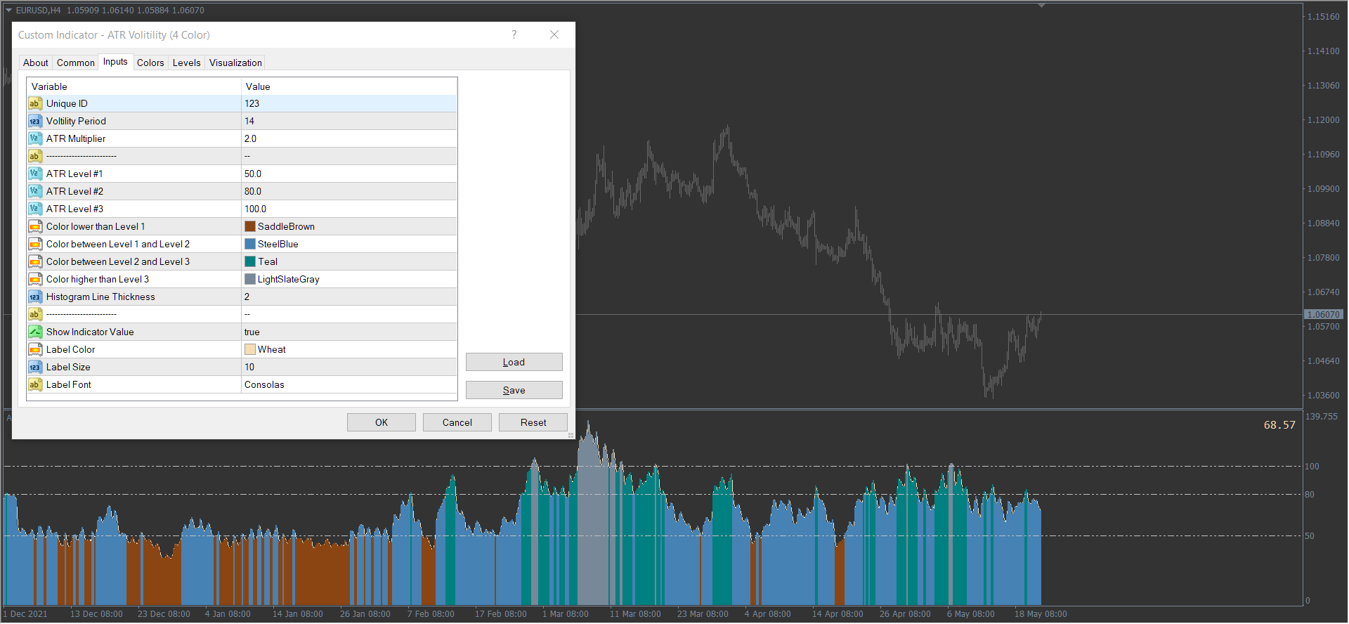 Then for colouring, you can change the Level values as you want. Yes, the one that I'm using is for 5 min charts. For H4, obviously, the level values need to be changed. See the attached picture. (Yes, you put the Level values as input and it does the rest. Changing the level values in Level tab has no effect)