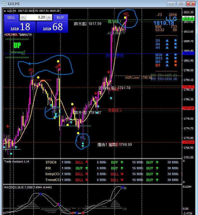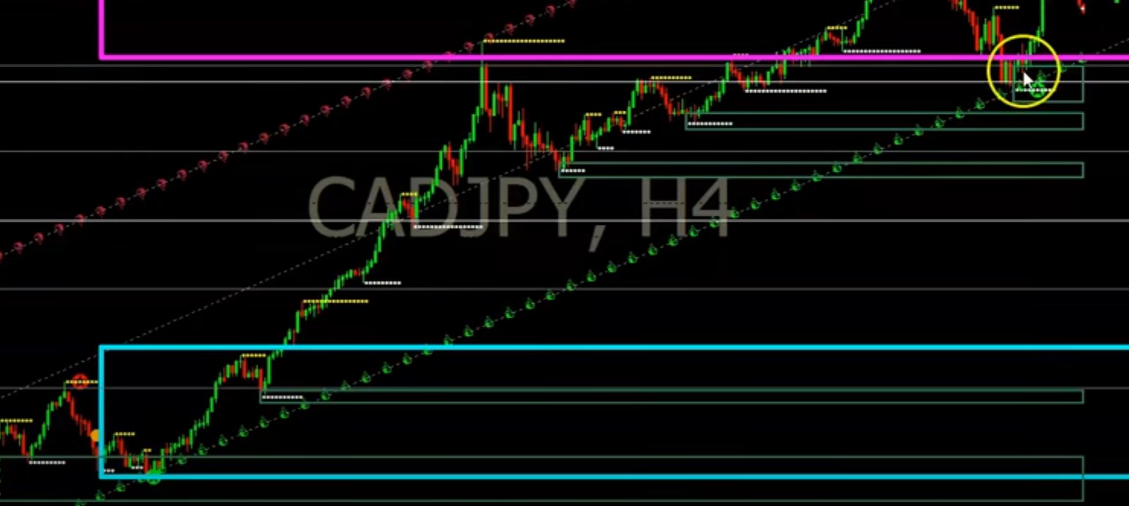(youll notice in the bigger picture, he has a support and resistance indicator, and it doesn't match up with this indicator in alot of places, so im thinking maybe supply and demand indicator, but a good one.... )