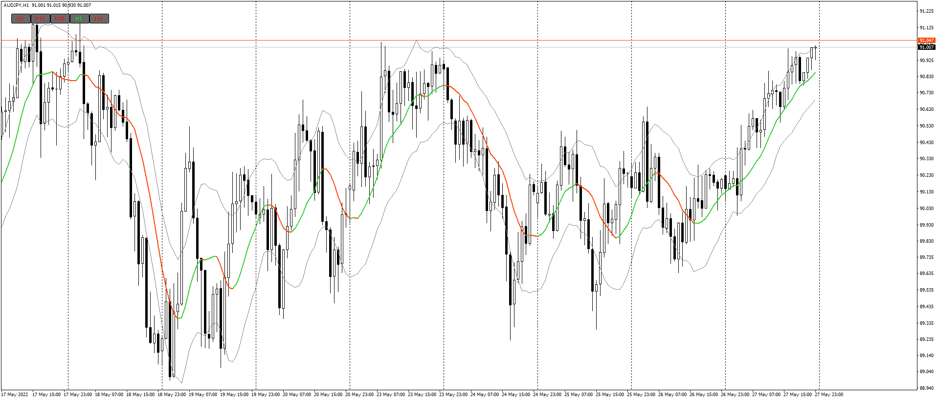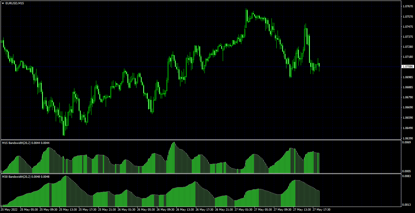 The presented indicator is prepared on the basis of well known indicator Bollinger Bands. In short, Bollinger Bands consists of two lines that are situated above and below of moving average plotted of a certain number of standard deviations away from it. In case of high volatility lines become wider, during less volatile periods they become narrower. So, these bands show borders of possible price movement.