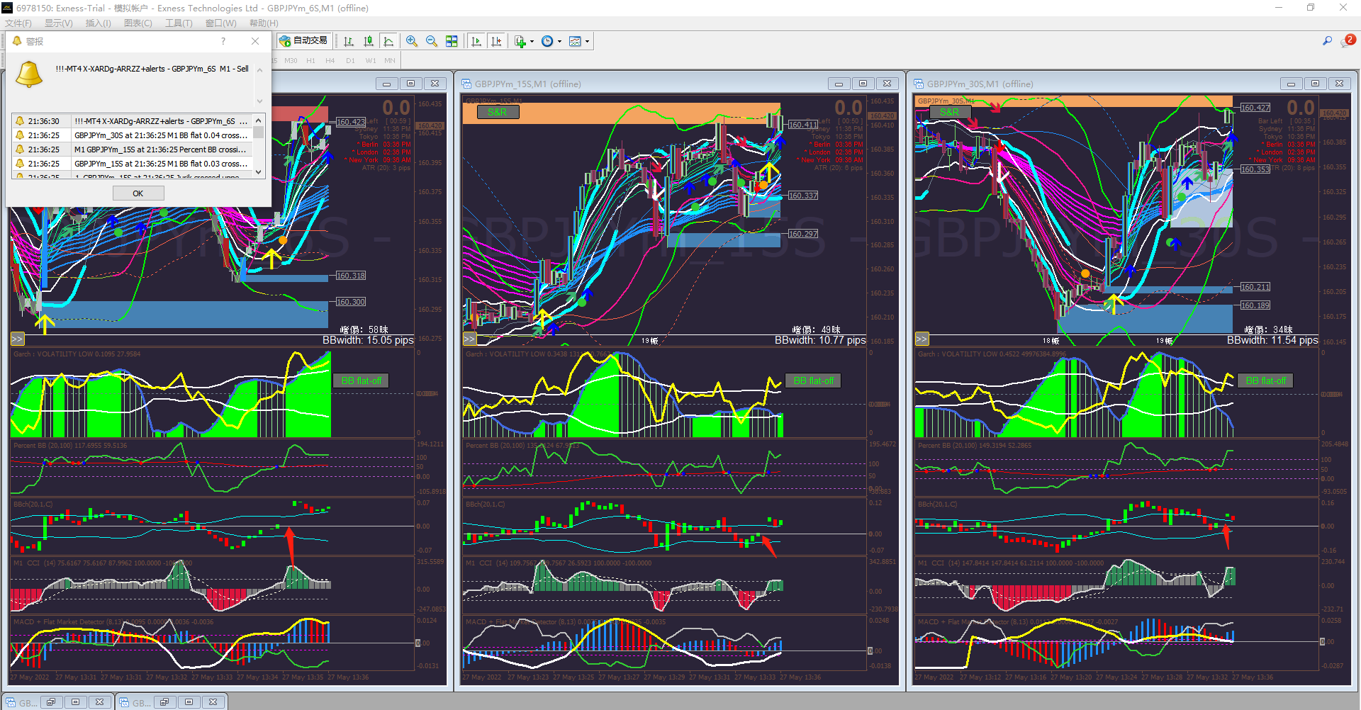 2.Bollinger Bandwidth histogram (alerts) shows BB expansion status