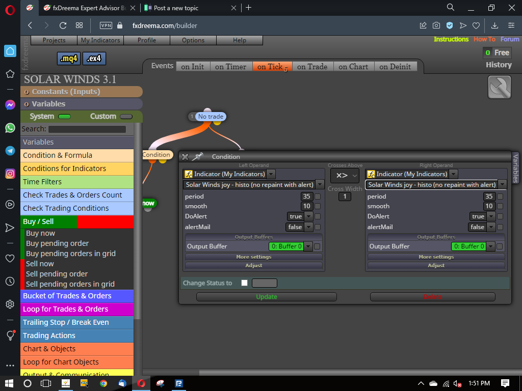 Mukhari325 wrote: Wed Jun 01, 2022 9:58 pm hy guys i need help here,i did a robot that opens and closes trades automatically using moving averages crossover but now i want to use solar winds settings to create an EA about solar winds histogram,i want it to open buy trades when crossing above the 0.0 gradient and close sell trades and after that opens buy trades please give me your views here