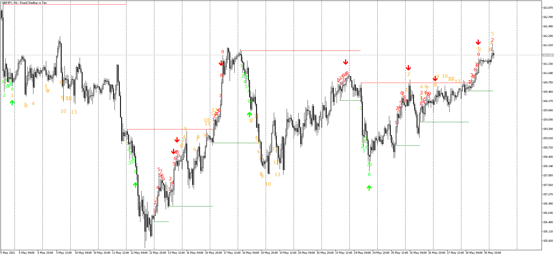 TD Sequential Ultimate indicator adds another technique of Tom DeMark's authorship to the mix — TDST Support/Resistance levels. They are based on the Buy/Sell Setup candles and provide, unsurprisingly, powerful levels of support and resistance. Those can be used alone or in combination with the rest of the TD Sequential system.