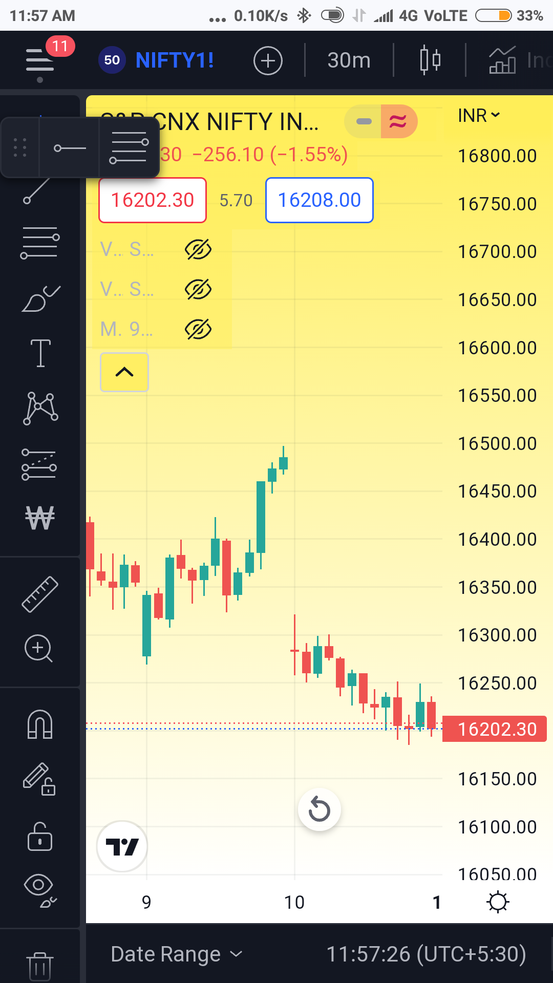Now, Daily VWAP is a kind of indicator which doesn't face problem because it reset to first candle of the day or session. Which i have tried to show in the previous post photo.