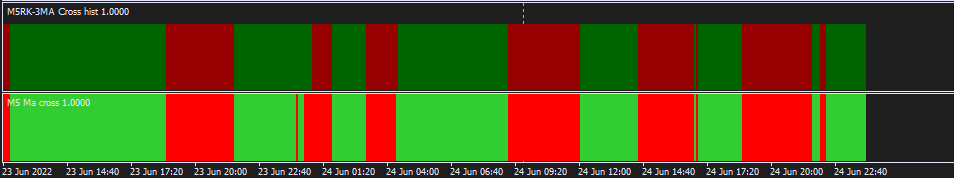 In the attached picture, if M15 and H4 timeframe are aligned in the same trend, it will be colored.