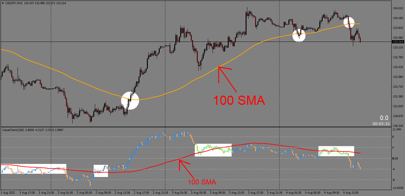 56Hello Mrtools... i wanted to ask can you please make the 100SMA on the value chart move the same as the 100SMA on the main chart... as you can see the crossover are not the same... please and thank you