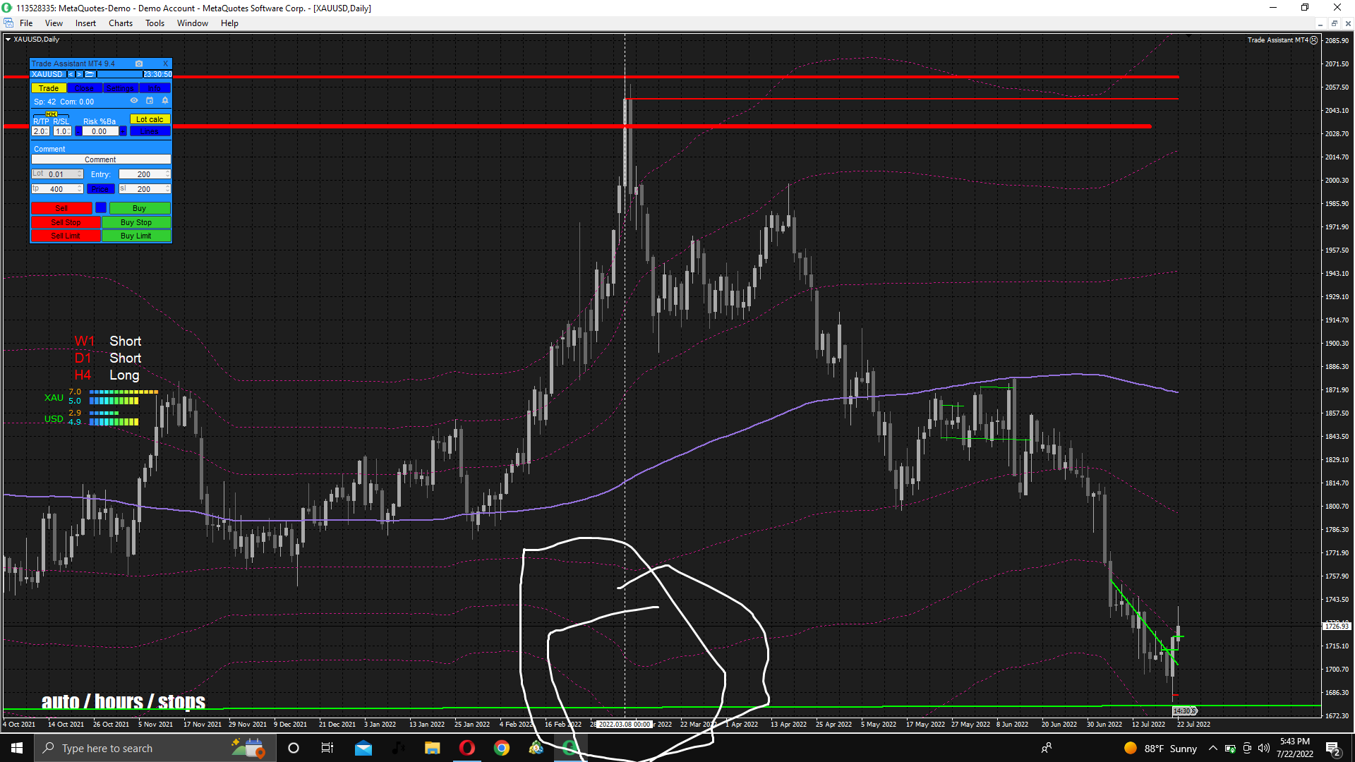 The big olive lines are EMA (200).