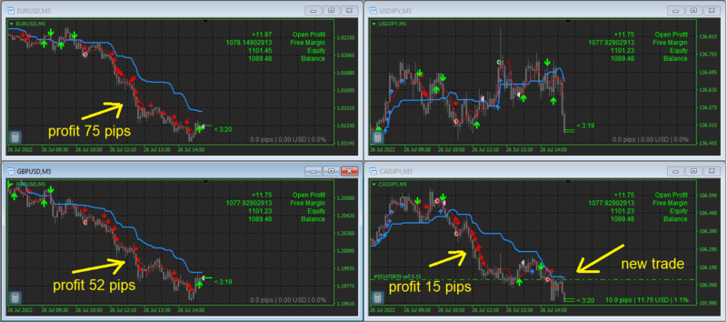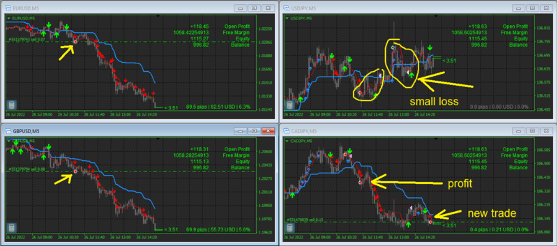 40Okay, arrows do work, all you need is trend tool, and that can be anything, for example, HULL MA, then take only first arrow and trade that, then close when HULL changes color or you get opposite color arrow, very simple, looks really good with XAUUSD M5, so maybe good with every pair that have strong trends. Can have tiny losses now and then, but that is the way it is, but it is profitable.