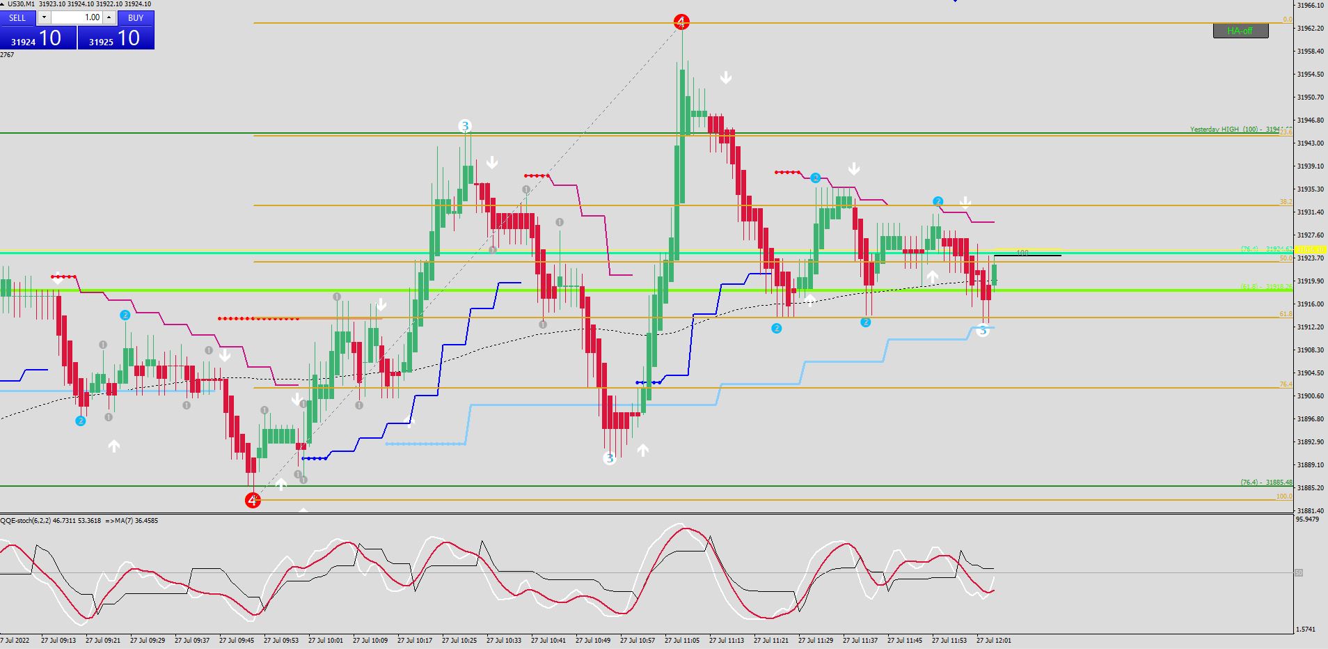 The QQE in the subwindow guides you perfectly (almost.......).... Well, it gives you a quick idea.