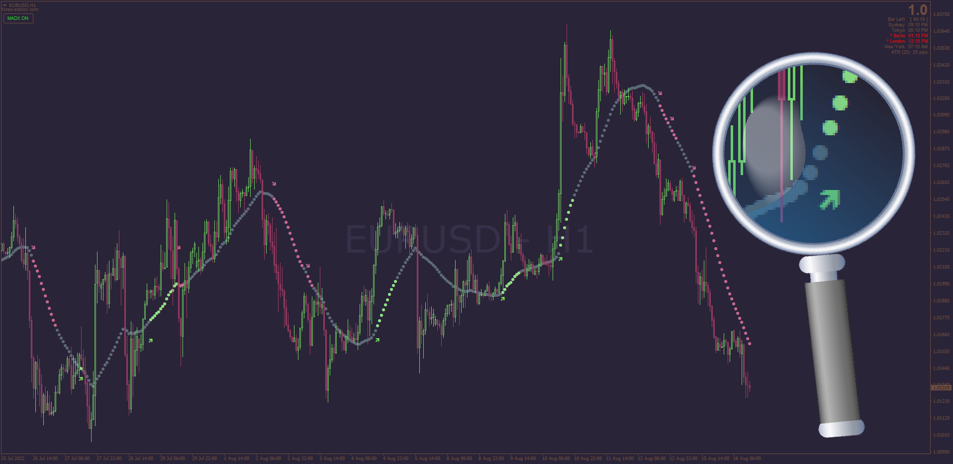 The MADX (Moving Average ADX) is Kvak's latest creation which is a Moving Average with a Slope that's defined by the ADX indicator. A truly intelligent design, this non-repainting indicator already comes with Averages Filters, Dots & so much more. D/L: viewtopic.php?p=1295485954#p1295485954