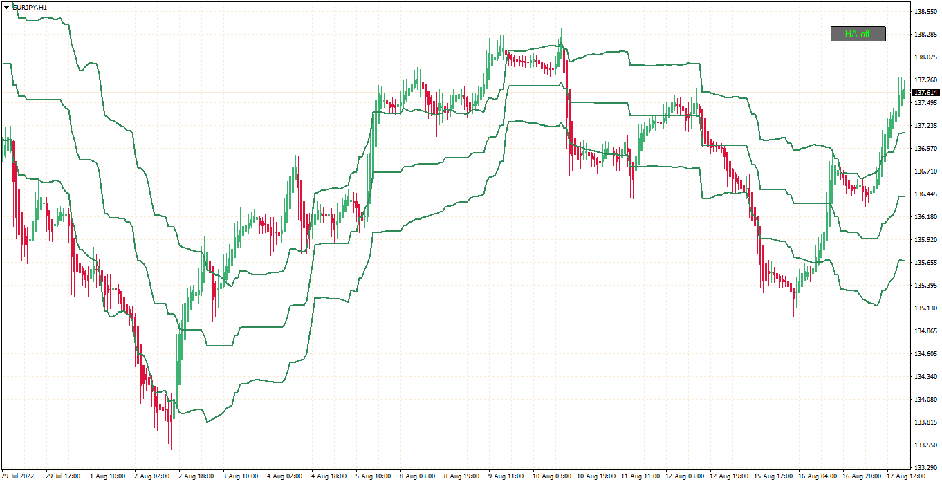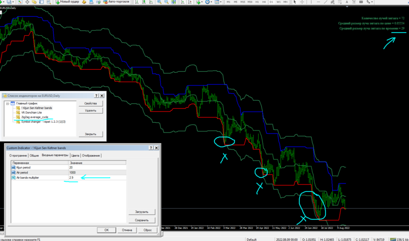 This time I proceeded from the fact that it is impossible to change the width of the Donchian channel and it was necessary to make another channel based on the same Kijun.