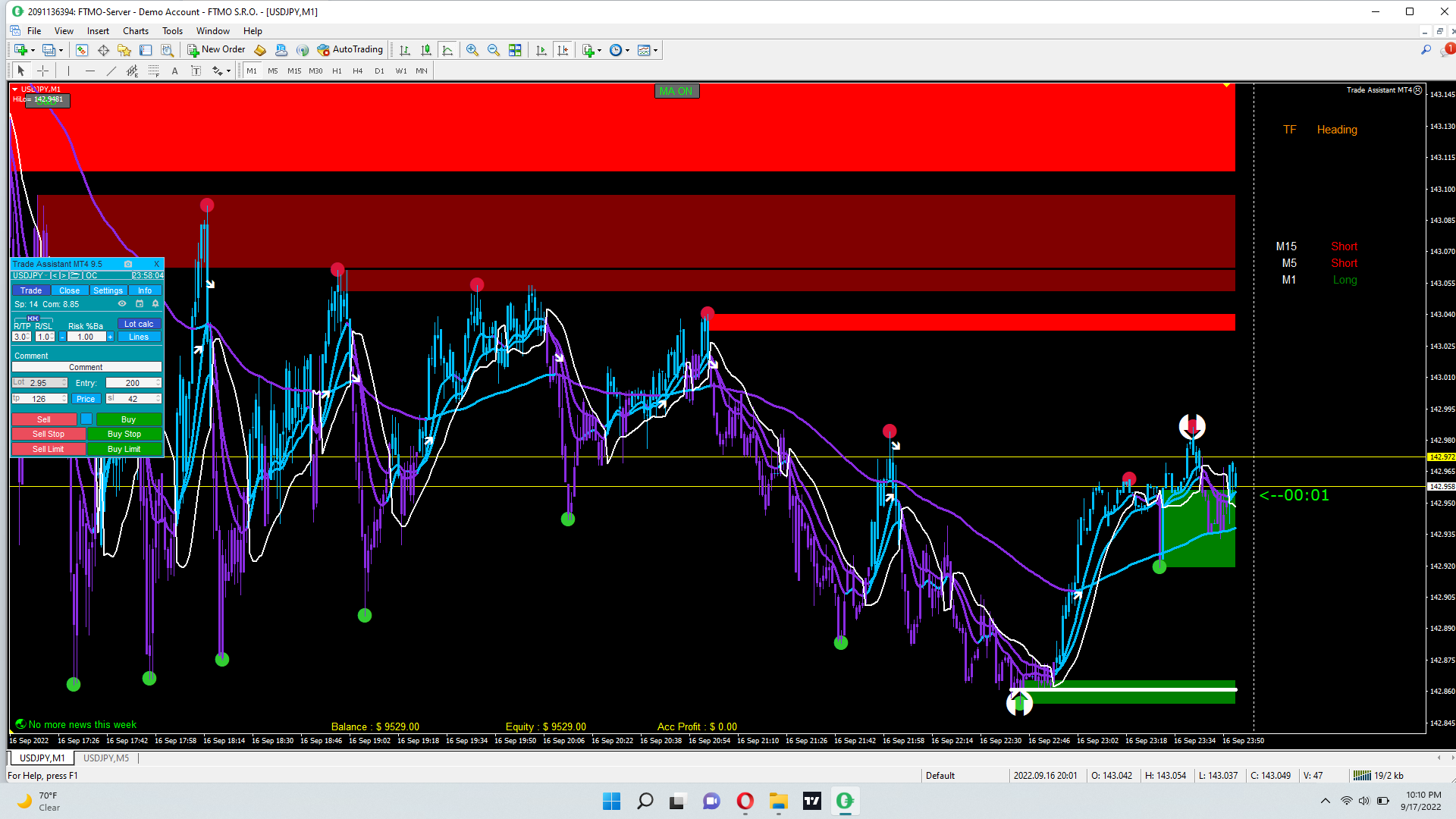 The indicator is giving you now a short signal whenever the Market is moving up going above the midpoint, as its deviating from the equilibrium.
