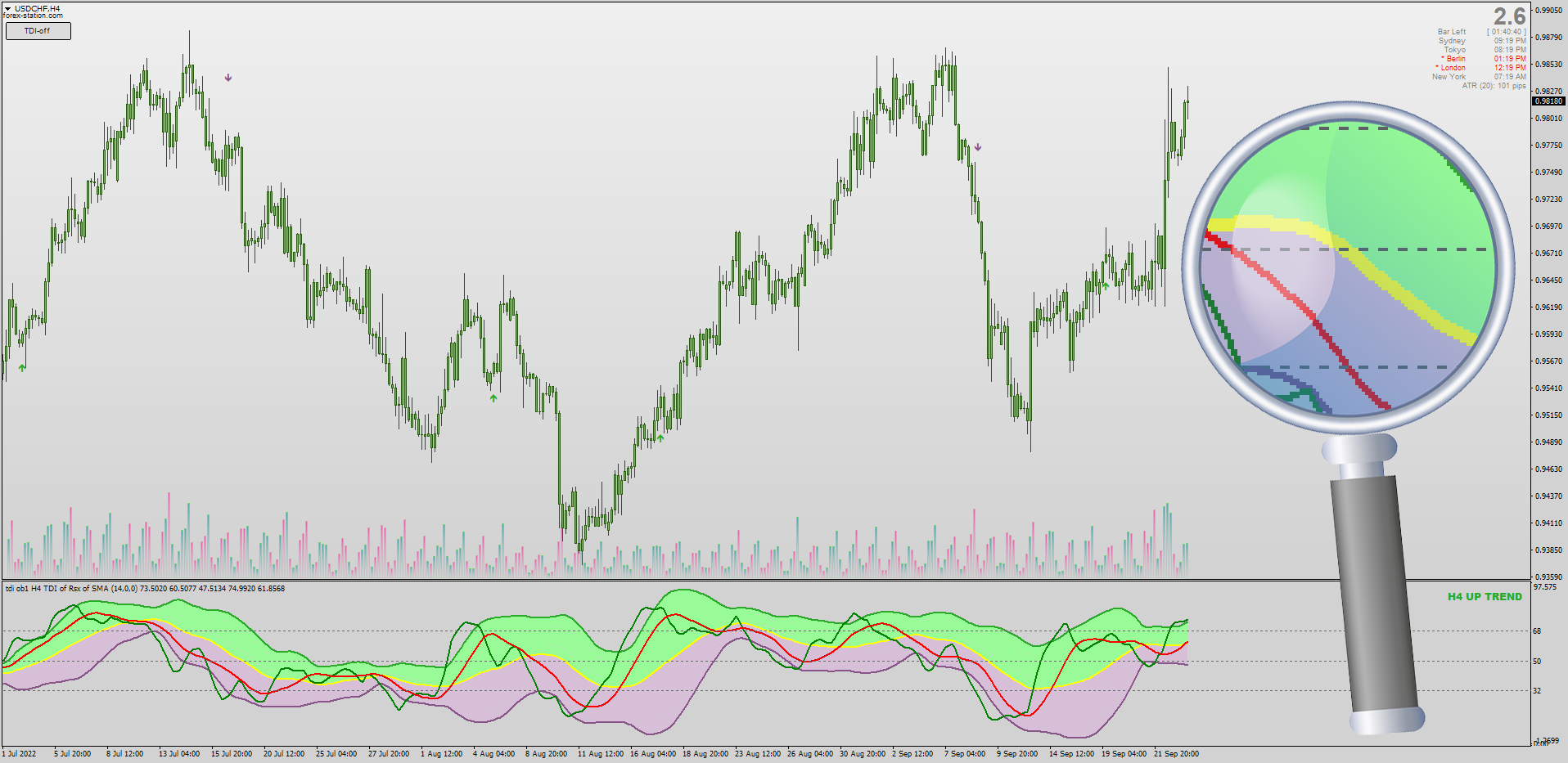 The MBL (Market Base Line) of the TDI is often overlooked but is one of the strongest tools for gauging market trends & thanks to Honje & Mrtools this new, non-repainting TDI focuses on the MBL's 55 & 45 level position & marks those areas on the chart: viewtopic.php?p=1295489793#p1295489793