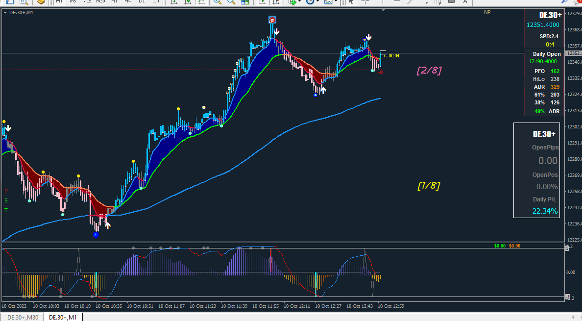 Regarding compounding:- I set myself a daily target and try to hit that target every day so if say my daily target is 6% then over a month which is 20 trading days I would want to compound my daily trades at 6% so my Fund would be 1 x 1.06 ^ 20 = 3.21 times my original fund. Having done that I would then look at ways to increase my daily target say from 6% to 8% so my Fund would be 1 x 1.08 ^ 20 = 4.66 times my original fund ( a couple of percentage points can make a big difference). One of the reasons that I trade Indices is because of their daily movement (in excess of 400, 500, & 600 Pips Hilo range which can be two to three times that in up and down movement during the trading day.) which makes it easier to hit and maintain my daily targets.