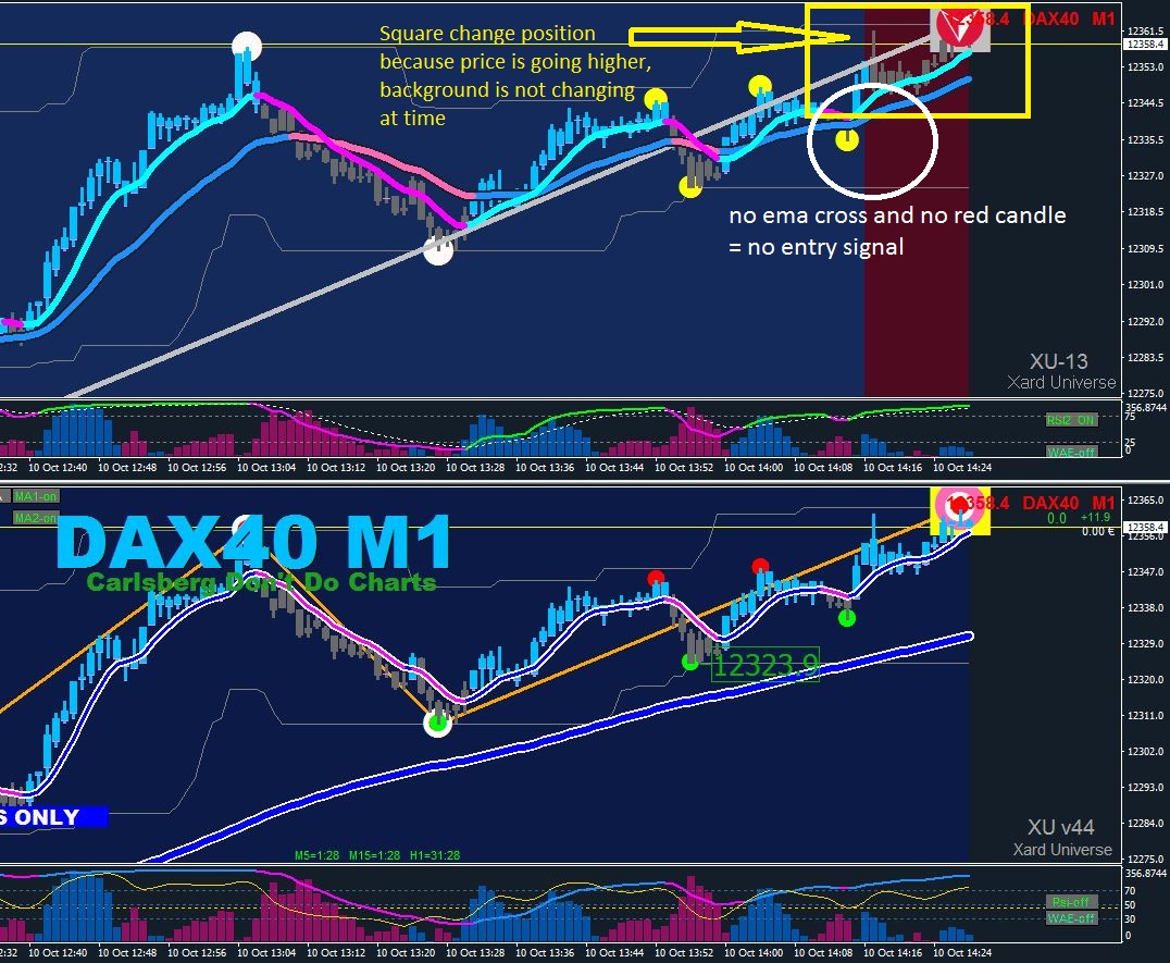 11533XARD: XU v13 already does that (background is set from Sq to Sq). The problem is if the Square has not reached, say the lowest point, the background will show a change in the new direction and that change will remain the same until the price makes a lower square whereas just now in XU v44 the background will change back as the price crosses back over the Trend line again.