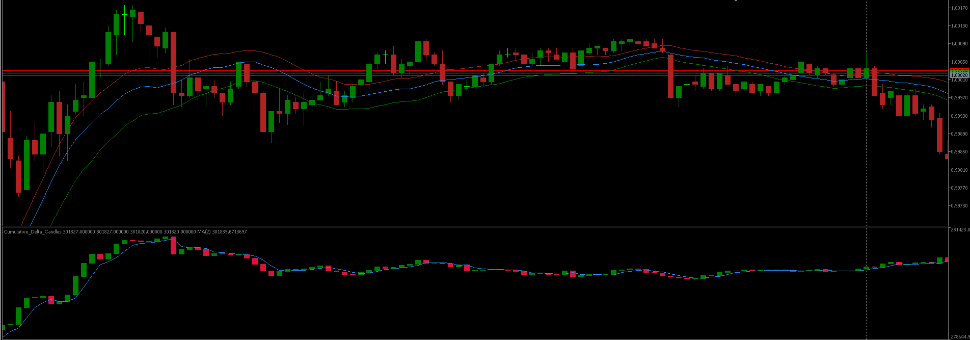 Before everybody starts to copy the code I need to tell you that its just a shell for plotting the custom Delta indicator as ohlc candles in a separate window, thus making it a Cumulative Delta Volume indicator. And no I cant give out the Custom Delta indicator that's in the code.