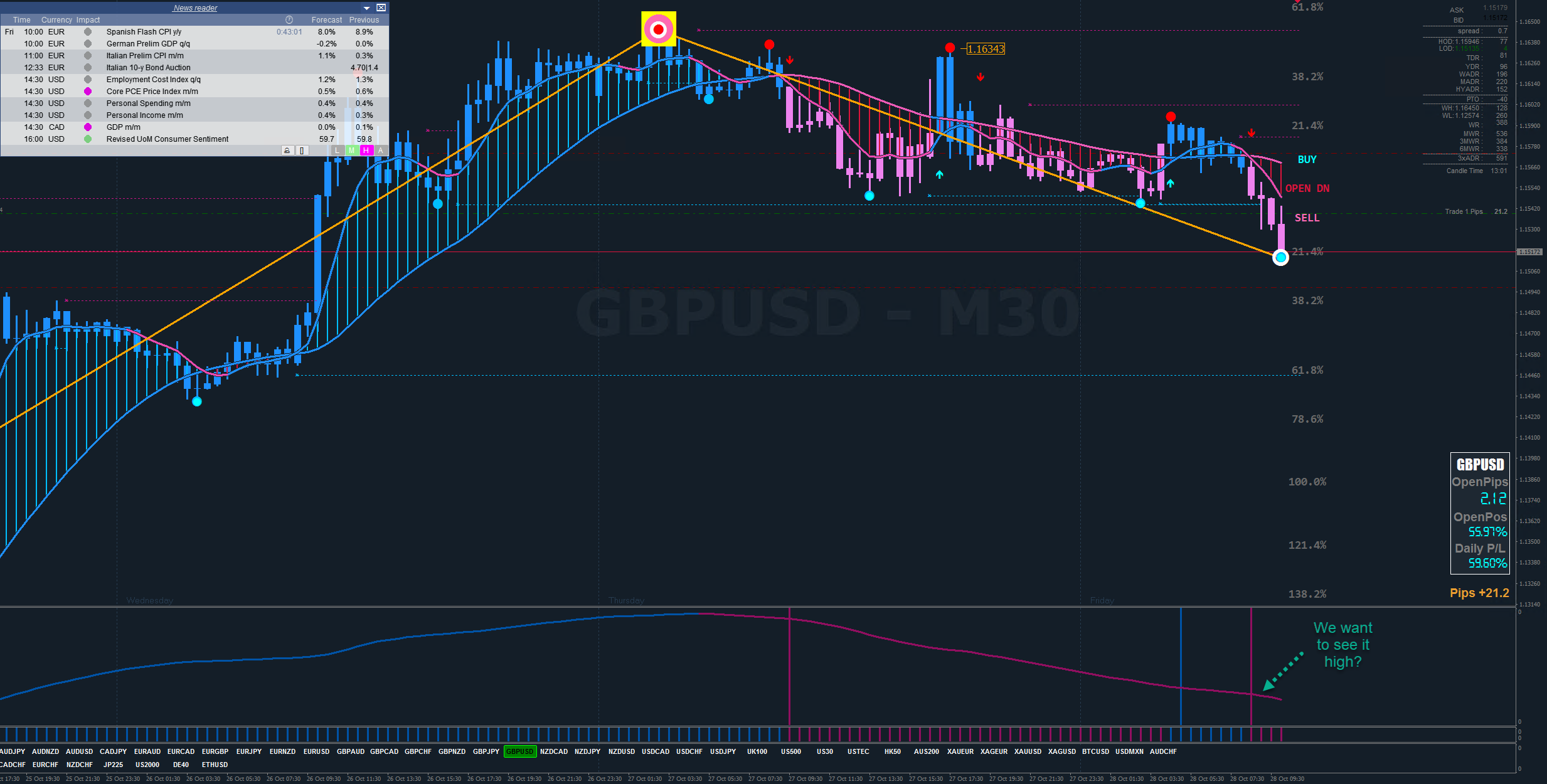 So I have a question about the bottom line. What does it mean if it is so low? End of the downtrend? We would like to see it high as possible for sell trade? And vice versa for buy?