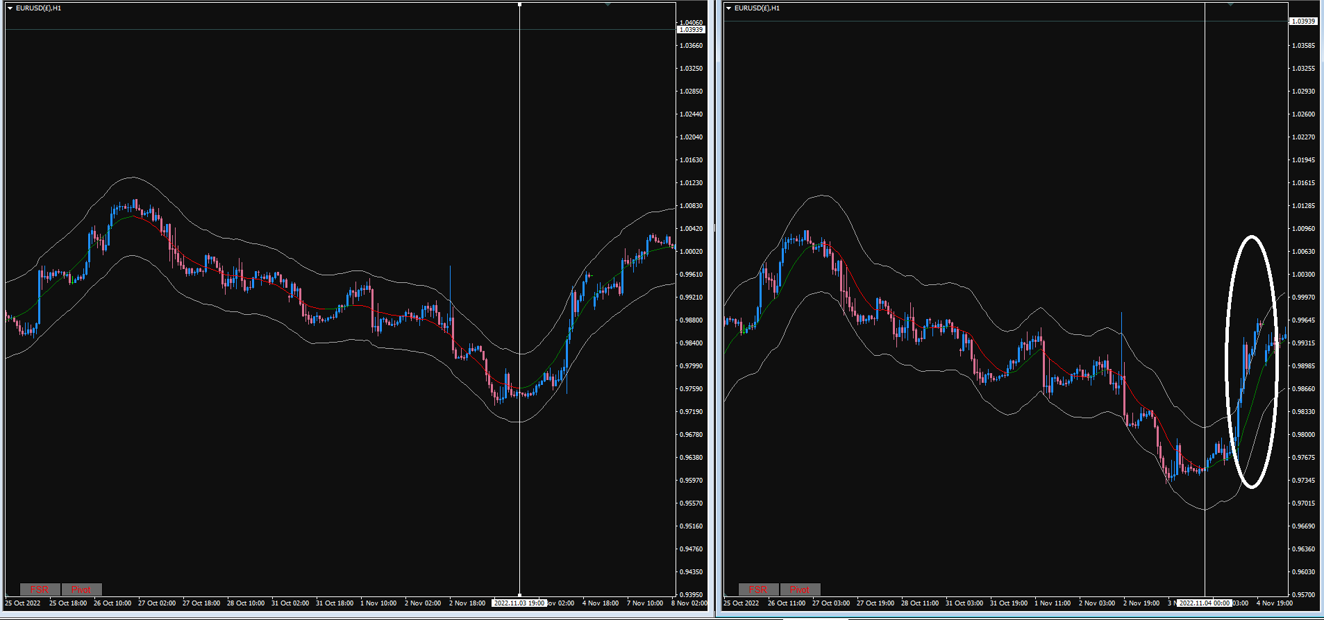 Outside band + Arrows with trend