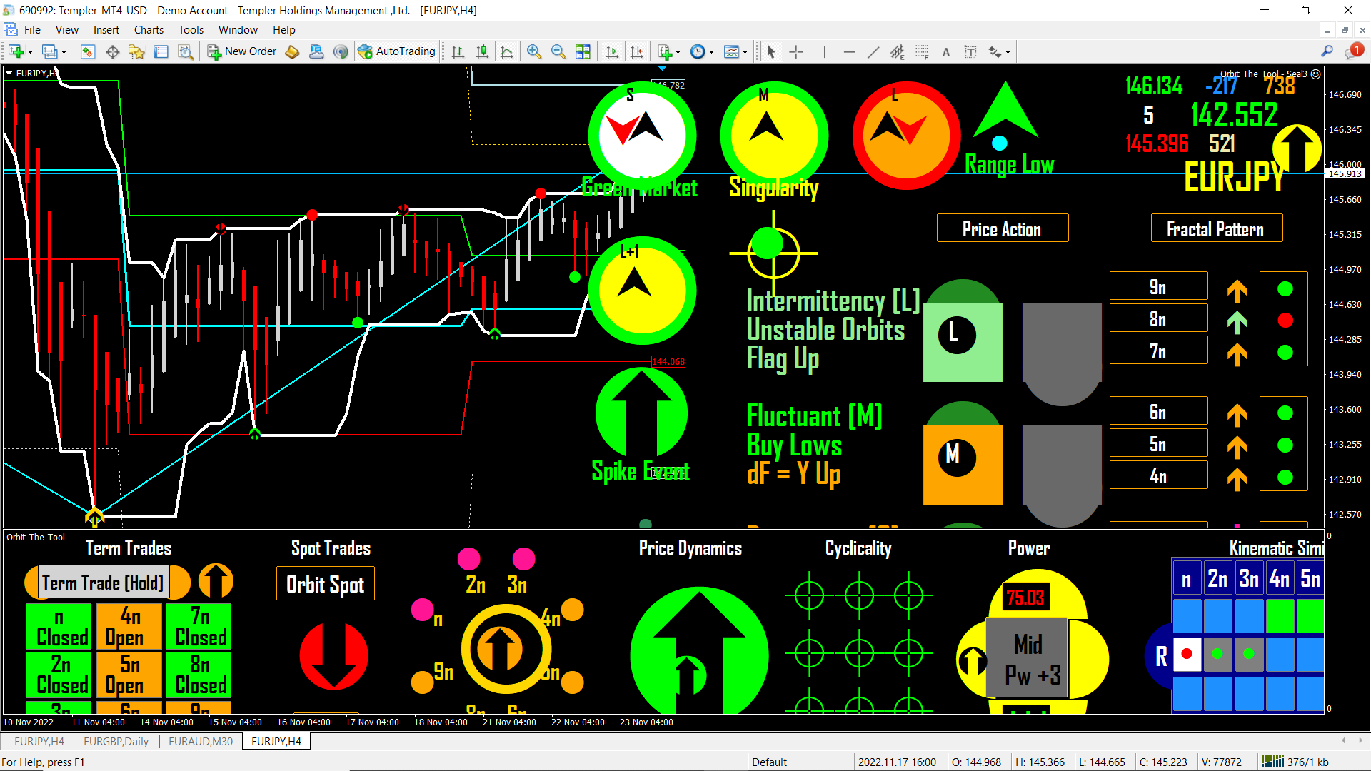 30Thats how it looks to me.Darkdoji wrote: Mon Dec 12, 2022 6:52 pm Hi frankly cannot say what has gone wrong with your installation or why the display is the way it is. Someone else had a similar concern but yours and his case are strange to me because I have had no such experience or complaints from others (not on this site) trialing the tool. My best advise is reinstall and to kindly follow the step by step instructions in the installation package. In nearly all cases (given yours and another's case) and so I am hopeful it should install properly following those steps - just in case something was missed. And yes all indicators are .ex4.