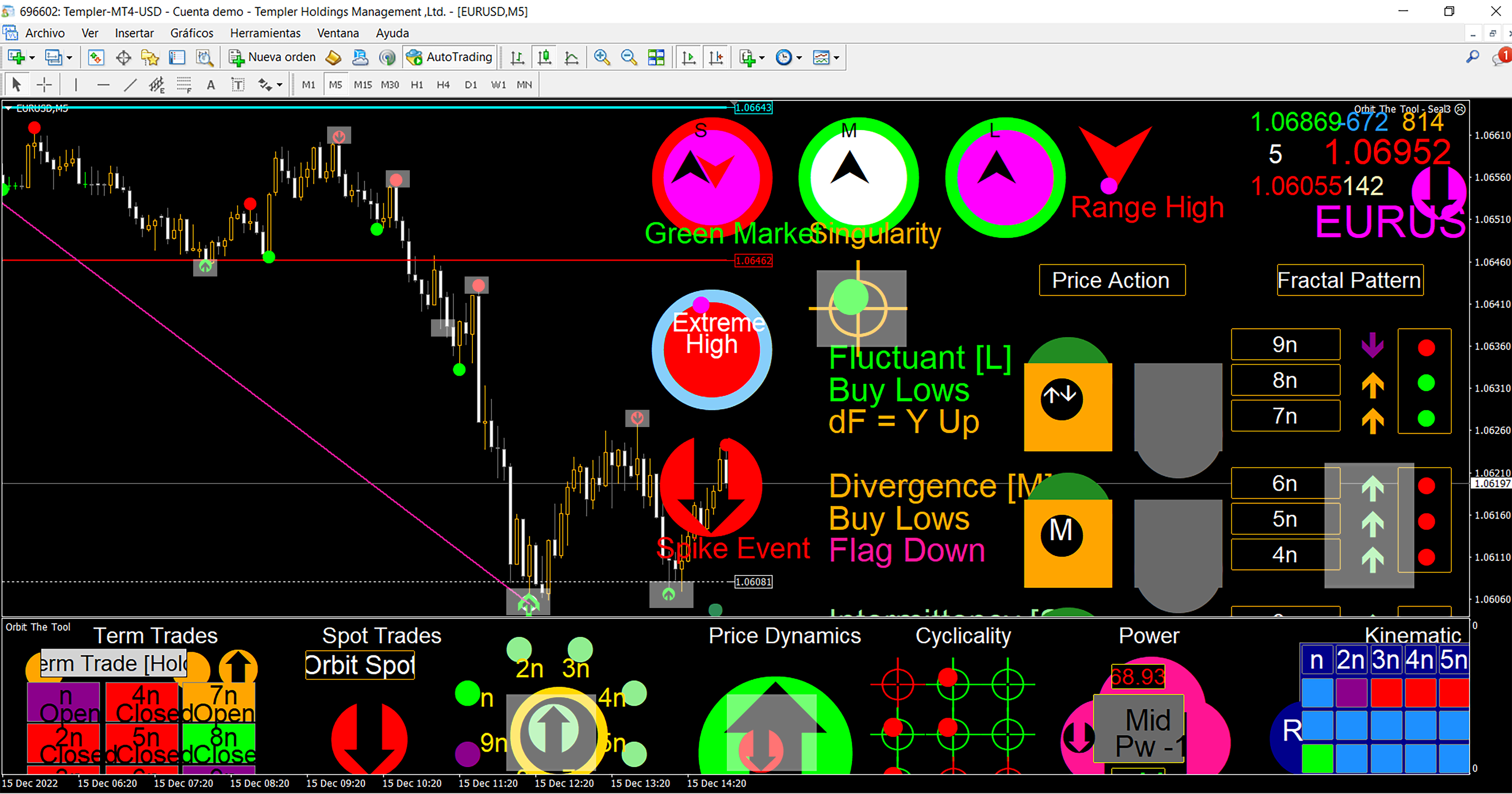 And, I have explained above (in response to another post) how you can scale this viewing of movement to some average resolution useful to trading the fractured sequences available. Please look at my response before this. To summarise, the one week candle has 7200 minutes of transactions in it and these accumulate every minute per day to define it so. The 1 minute "time frame" is merely way more fractured than the one week but it is the 1 minute price action that accumulates in a week to define a one week bar. All you need is a) where is the average pivot at a low? When does the sign for that average change to green (i.e. the Orbit Spot arrow), so that is what gives you accurate trades and the timing of the change in direction of the average pivot which we have said is best read in H1. But do not forget that depending on direction, when that stop was at a low it was at a low everywhere across the feed and has its match across the entire feed from M1 to MN (i.e. pivots are nested and reduce to a single base and are the same regardless of "time frame" since frames provide no additional information to the fact of a pivot. It is simply a question of in what window to read stops best and therefore to act on such information to win. Stops (pivots, semaphores, etc) reduce to the same exact point across the entire 9 "frames" (the market is a nested system of pivots and when we do not understand this or cannot visualize its meaning we make costly mistakes).