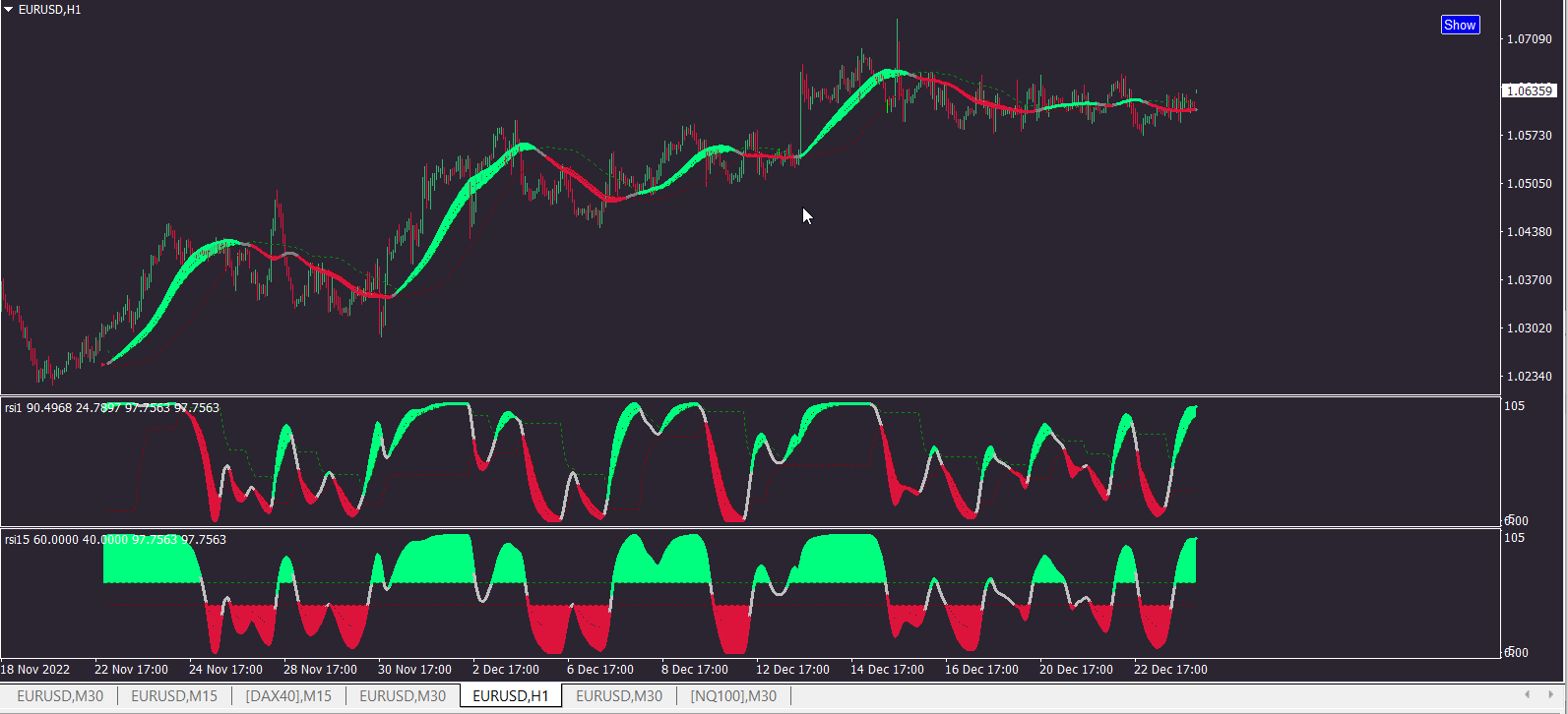i can see the clear market trend using both versions + stoch OB reversal when RSI line ; histo below 50 and slope