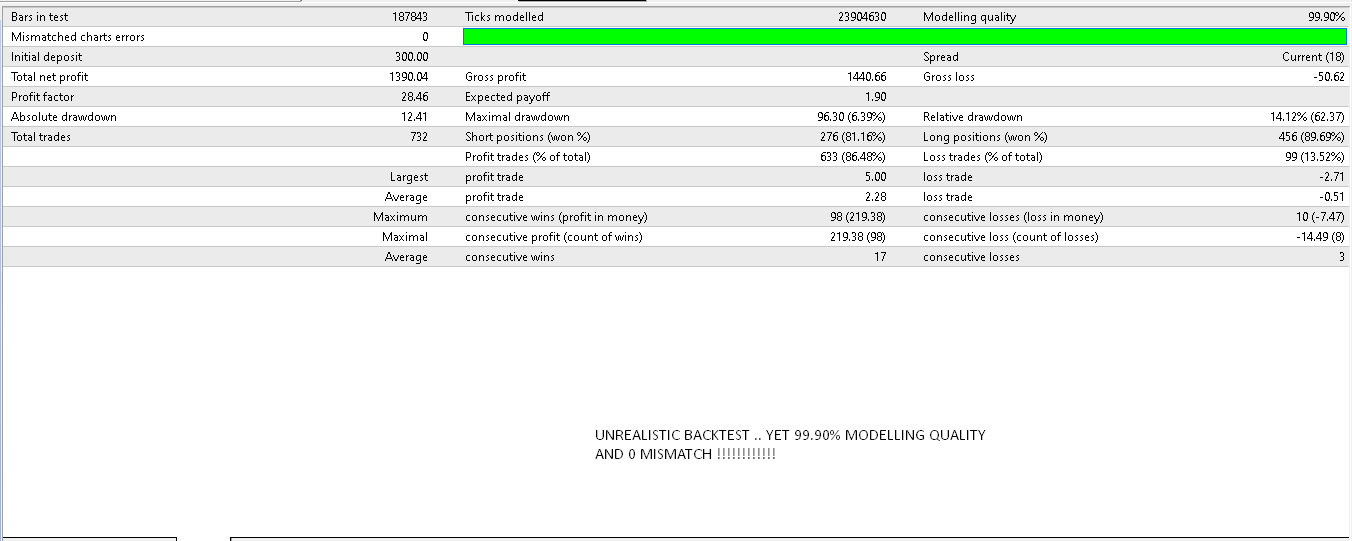 unrealistic mt4 backtests with real tickdata and 99.90% modeling quality ( MT4)