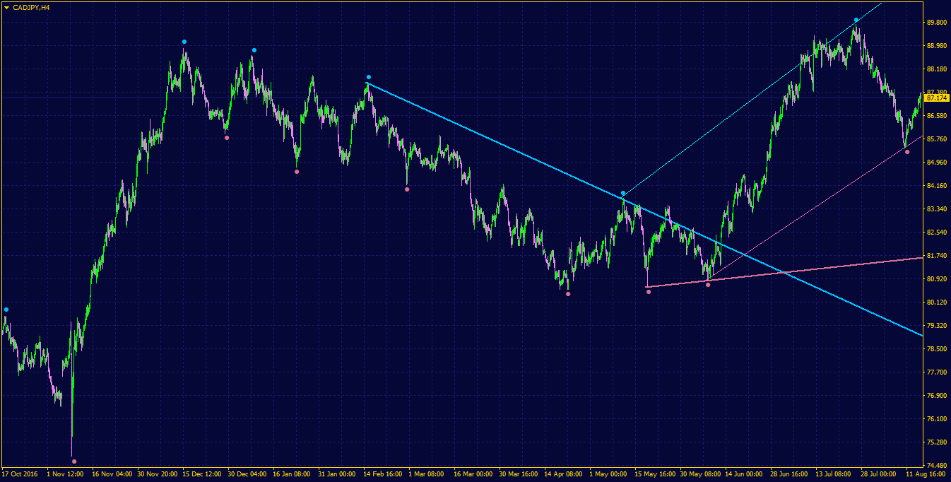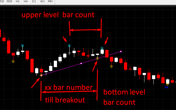 my idea was to slope breakout slope line of fractal 2 period. but to filter false signal , i defined the xxx bars for upper fractal points and lower fractal points