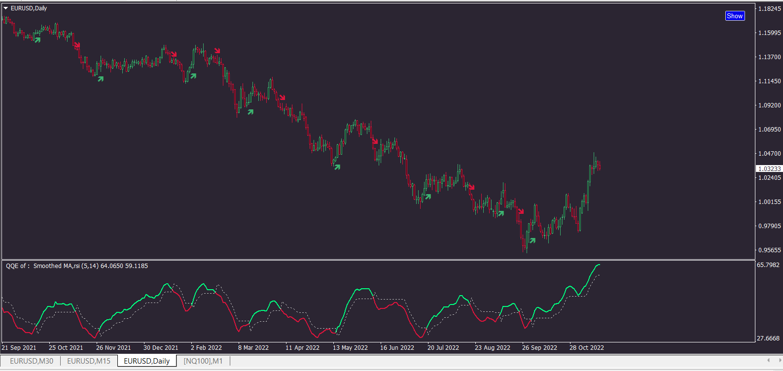 I noticed QQE only gives reliable signals (without much noises) , when applying SMA or SMMA to it, but the issue with it is too laggy and provides very late exit signals (about 2 candles late on Daily). I tried applying ZLMA, ZDEMA,ZTEMA, too much noises and crosses between the 2 QQE lines.