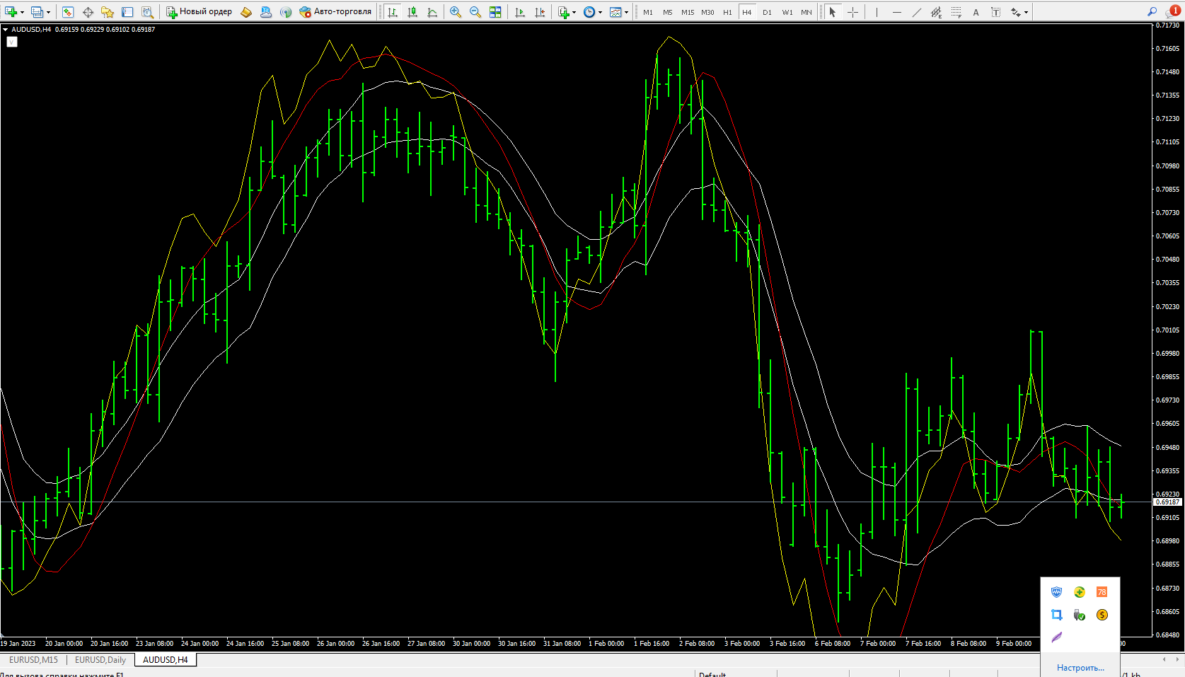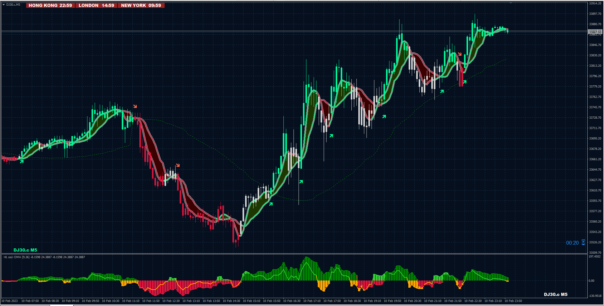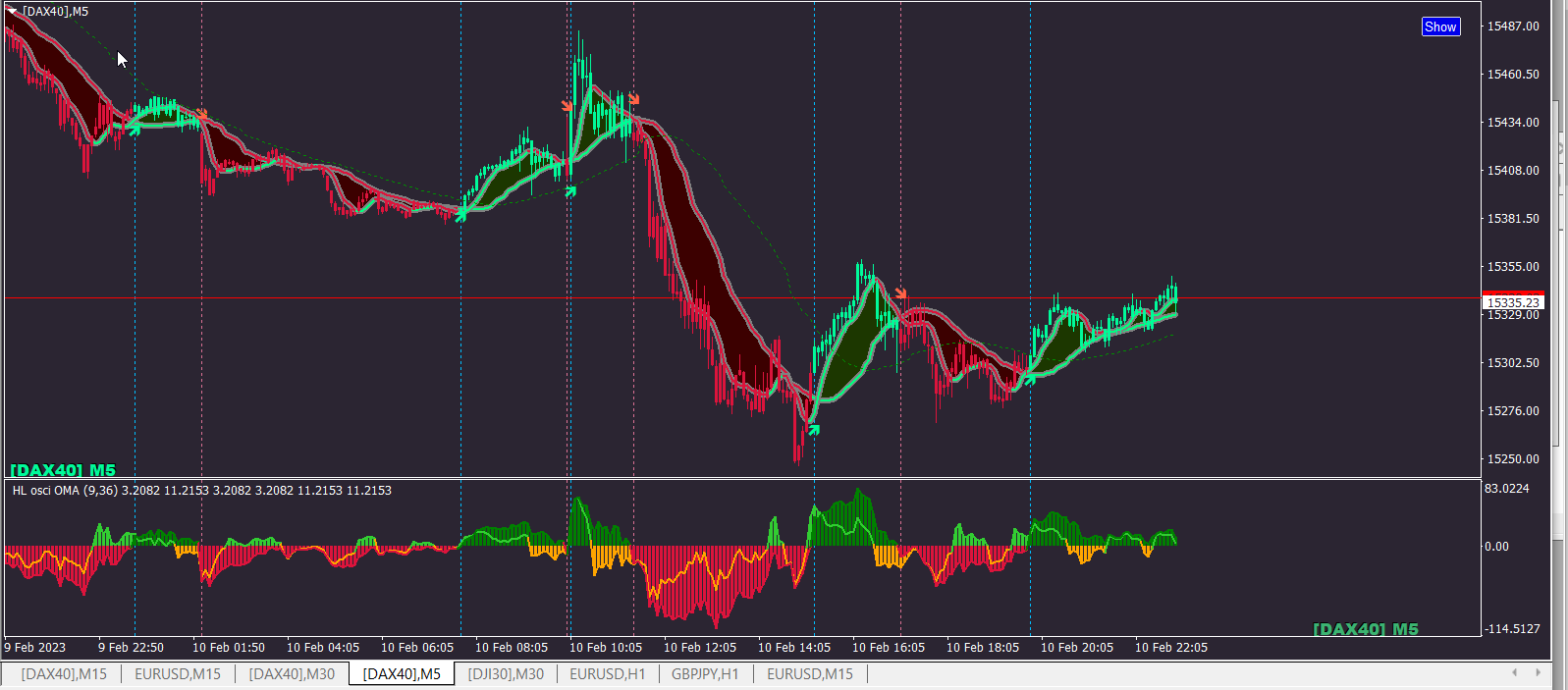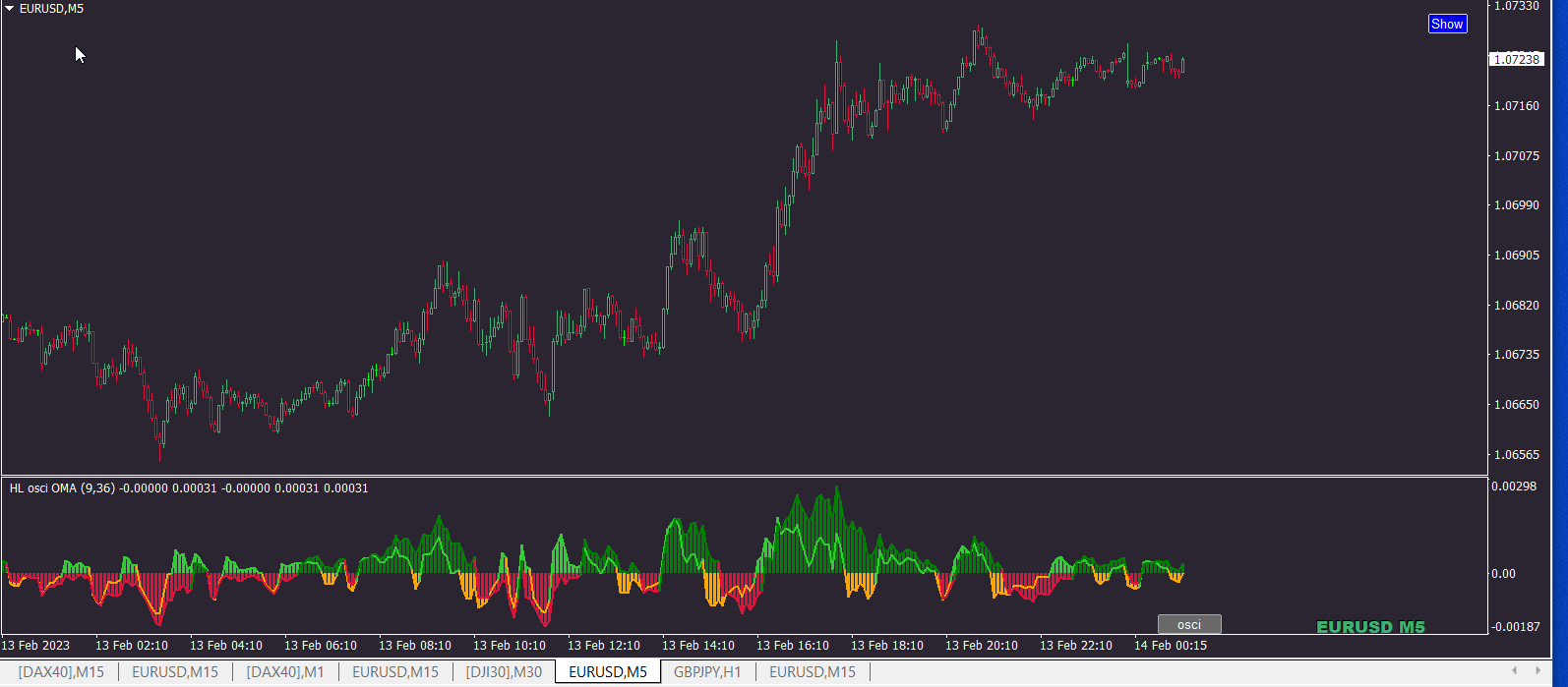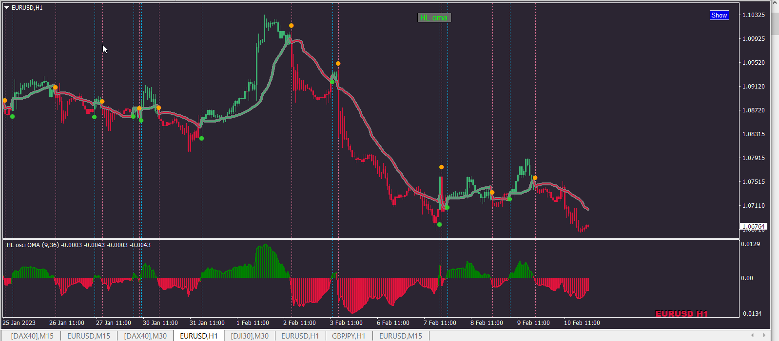 I have my personal HighLow oscillators. They are made according to my formula and are calculated as the difference in price changes in relation to the open price type of the specified period. The crossover signal absolutely corresponds to the breakdown of the HighLow MA channel.