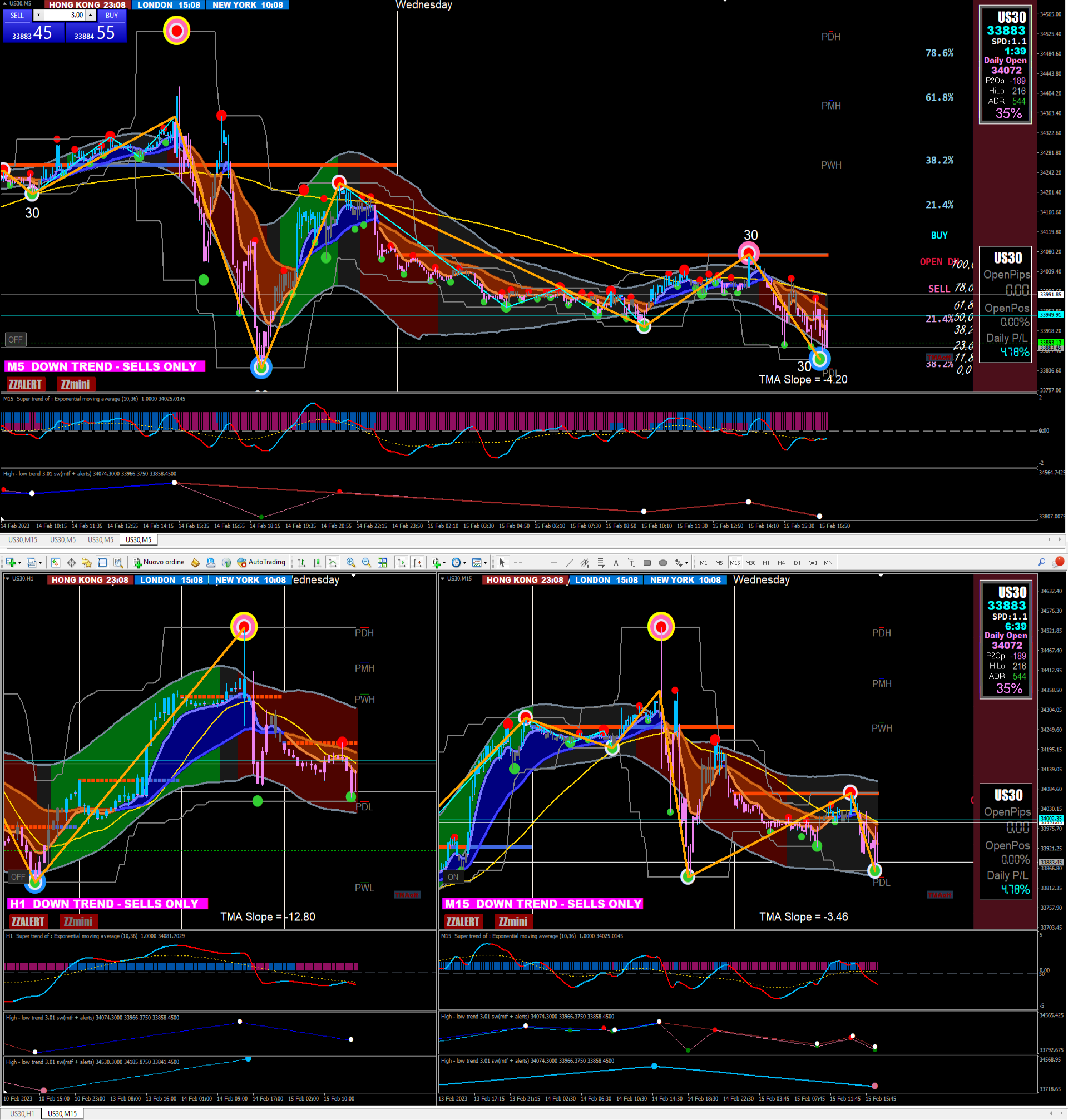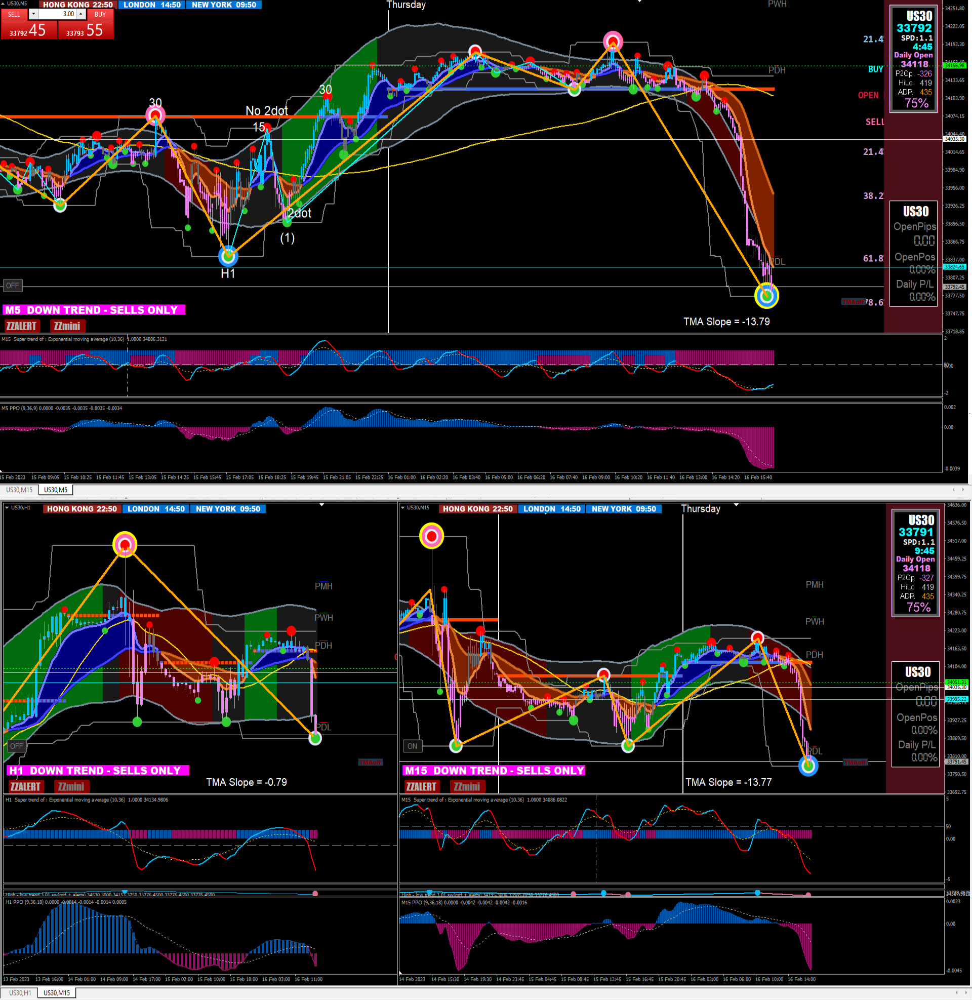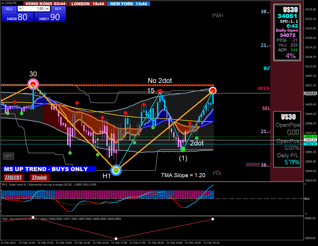 in all time frame from H1 to M5 the sequence is the same.... if you look fine some semafors and dots on H1 and M15 you can see them in M5 charts
