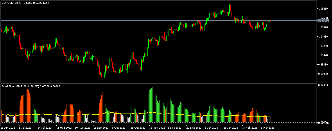 This indicator was first introduced in 2006 in the Stocks and Commodities Magazine by a gentleman named Robert Hill also known as “Mr.Pips”. The “braid” is formed by intersections of lines based on different moving averages. The difference between the two is then plotted as a histogram. Filter line is based on a percentage of the ATR value.