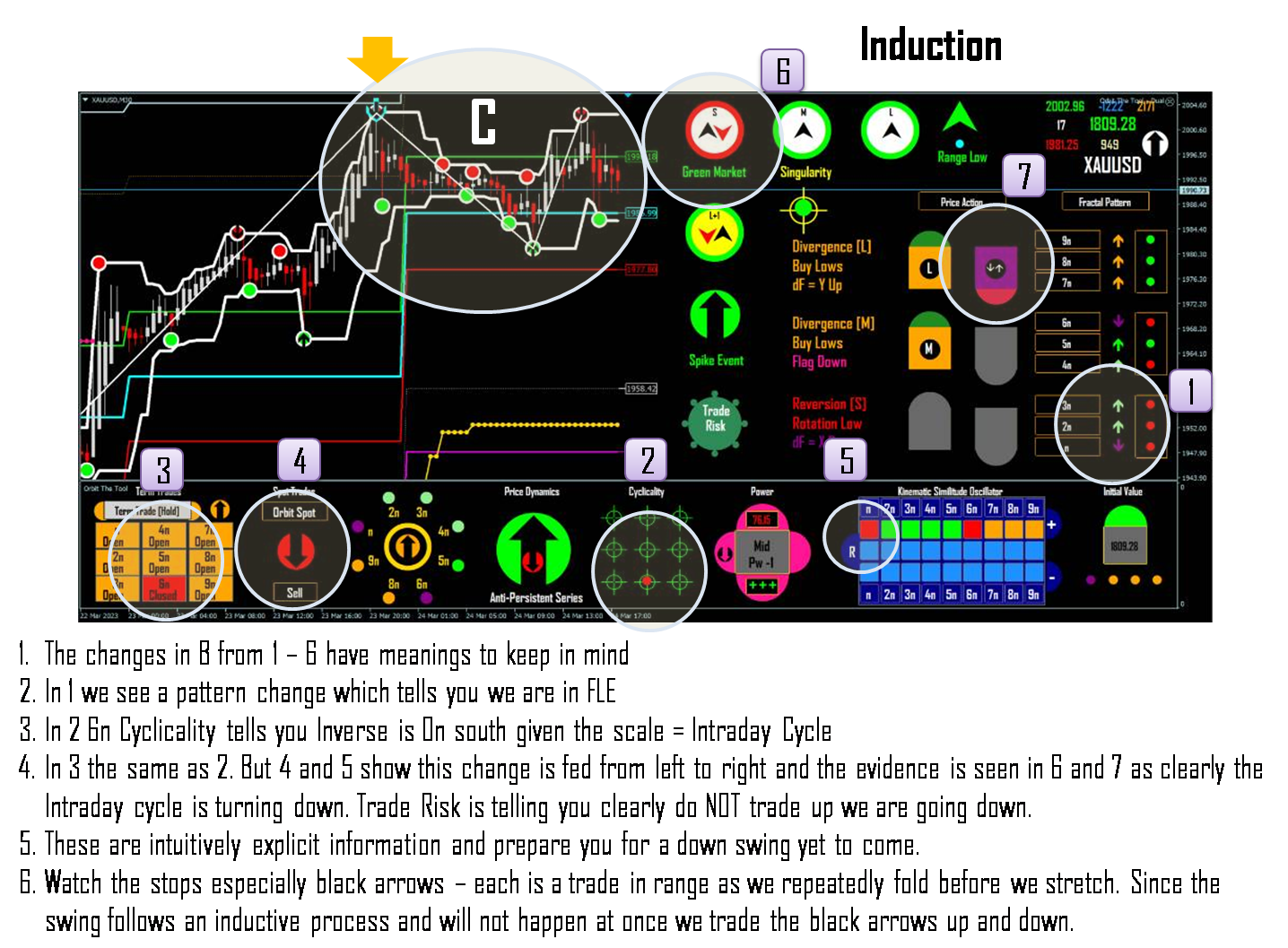 With respect to what I am saying here viewtopic.php?p=1295507593#p1295507593 below is the graphical expression of the same meaning. It is the math you keep in mind first and your experience is second. Your experience is from the behaviour of the screenface per move and is useful. But no 2 sequences or cycles is the same in chaos EVER so it is difficult to the point of impossibility to find an exact screenface sequence that will assure your fear of risk. The math says on Inverse a trade is zero risk. Take advantage of that. So place your confidence in the quality of the mathematics which we have shown you in formal math text (it is not me that said so it is mathematics that says a bijection has continuous inverse on). Your experience will bear this out each time. In "technical" analysis there is no such quality so the trader tries to guess the best combination of indicators that guaranties "high probability" trades (but note ultimately this is negated by the fact that in a chaotic system no 2 cycles are the same EVER). But Inverse On = the highest probability trade and is and of itself the only sure indication you can get. Of course being human one would want something "concrete" to assure him or her he is on the right track so it is fine to use snaps to try to identify such for yourself and generally just for psychological reasons but the quality is in math not what you try to work out since that can fail. But if you understand the math in slide 1 for instance you know that a certain function must fluctuate uncertainly in order to repeatedly fold since the system (market), must repeatedly fold to stretch. That does not imply risk but an inductive process that in the end follows through accordingly. It is simple is NOT a lack of quality it is because of the absolute certainty of the quality of the MATH - it is absolute and hence a deterministic system admits no randomness in its future states exactly as you see in Orbit.
