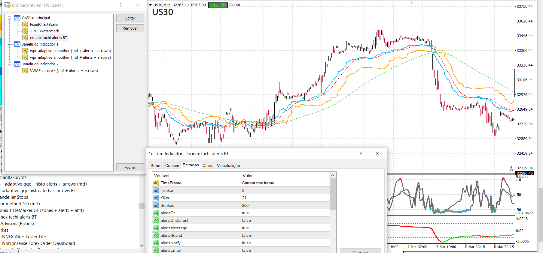 This a version not using the built in Ichimoku, it's quite a bit different but still seems it might be useful, still working on the built in Ichimoku version, having problems figuring out the forward shift part in strict mode.太虚一毫 wrote: Sat Mar 25, 2023 11:43 am I use cronex taichi - histo nmc BT alerts.mq4 .![]()