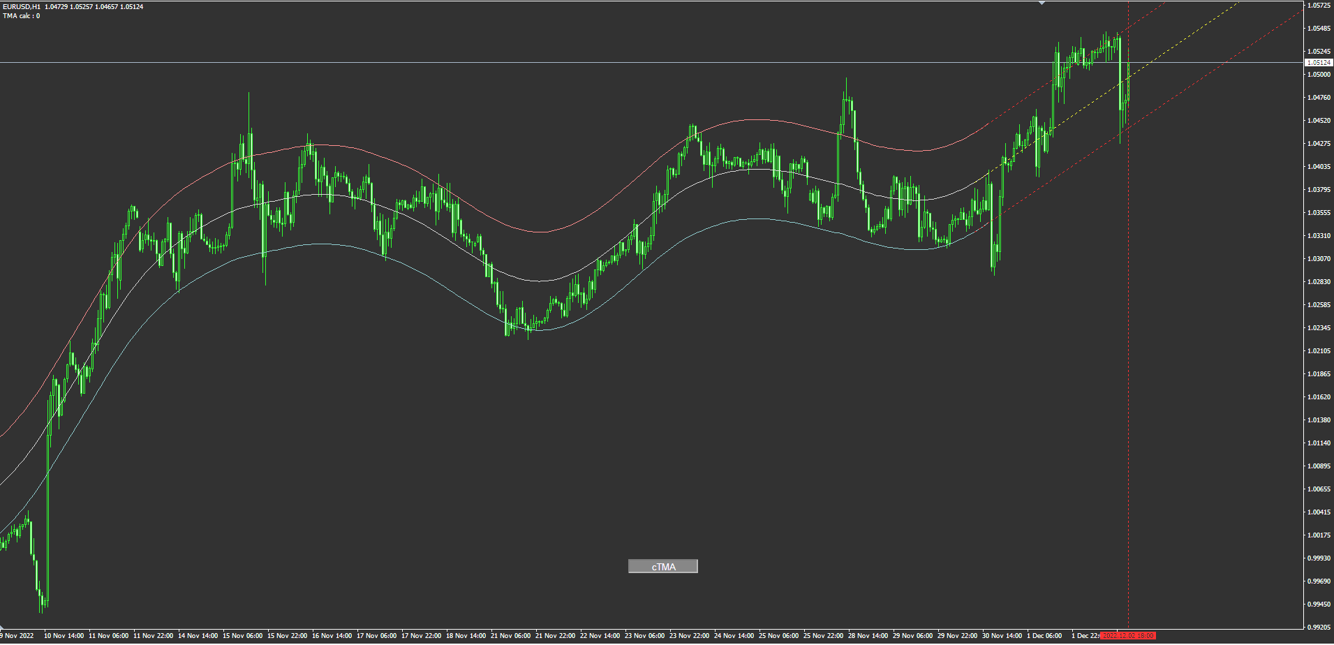cTMA is TMA moved in the past direction.There is no data for the moved.Therefore, it is extrapolated using LWMA. But this indicator is an extension of the shifted TMA without extrapolation.