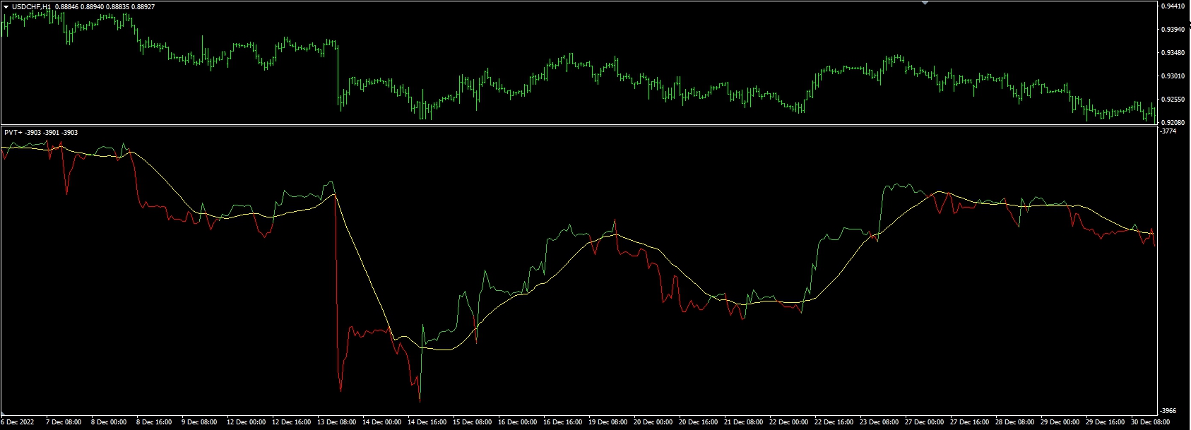 PS: For a version which also uses Parabolic SAR, please see: Parabolic PVT indicator.