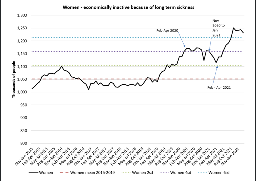There was a notable rise in people who were not working because of long term sickness which began in spring 2021 when the vaccine was rolled out to the working aged population.
