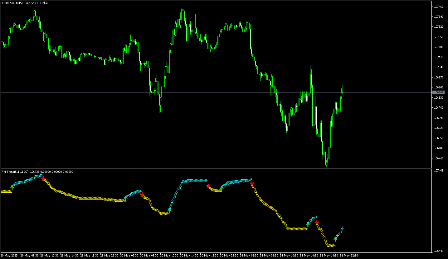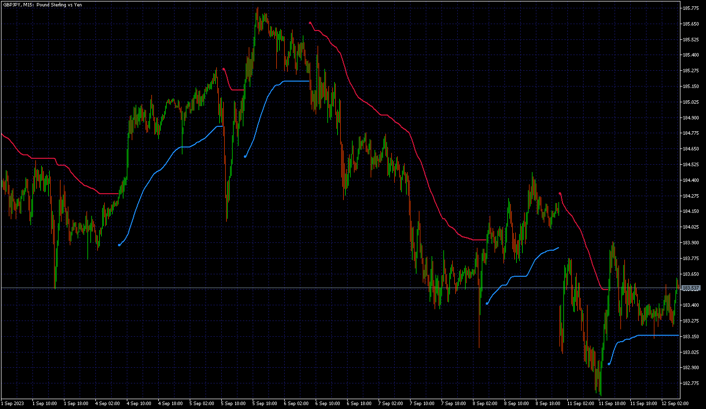 You can use the color change as an indicator of current trend direction, and you can use any of the stop lines as stop loss for your orders.