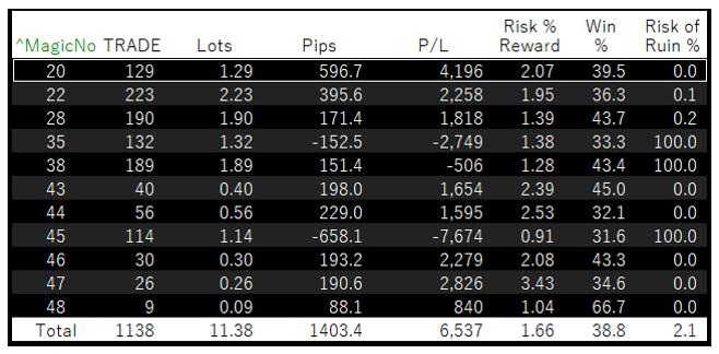 The timing of the exit is done by sensing the ups and downs of the total pips.