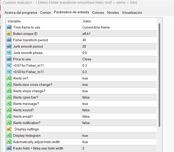 I suggest that whatever timeframe you trade on, enter when both the EFT line of the current as well as the first higher timeframe of the Ehlers Fisher transform smoothed histo have crossed their signal lines and the current timeframe EFT line should also be above the zero line, and exit when the first higher timeframe EFT line crosses it's signal line in the opposite direction. For the "Price to use" I use the "Heiken ashi (better formula) typical" but you can use the Median price which is the default, as you like.