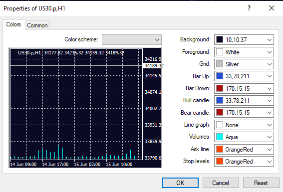 Then, go into the "Colors" tab and where "Line graph" is, select "None". We don't want the Line Chart showing on the chart either, so we're making it invisible.