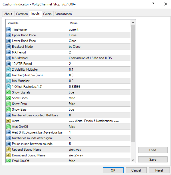 The Volty indicator only comes as bars and not full candlesticks with wicks, so I've borrowed the wicks from another indicator. (As pictured)