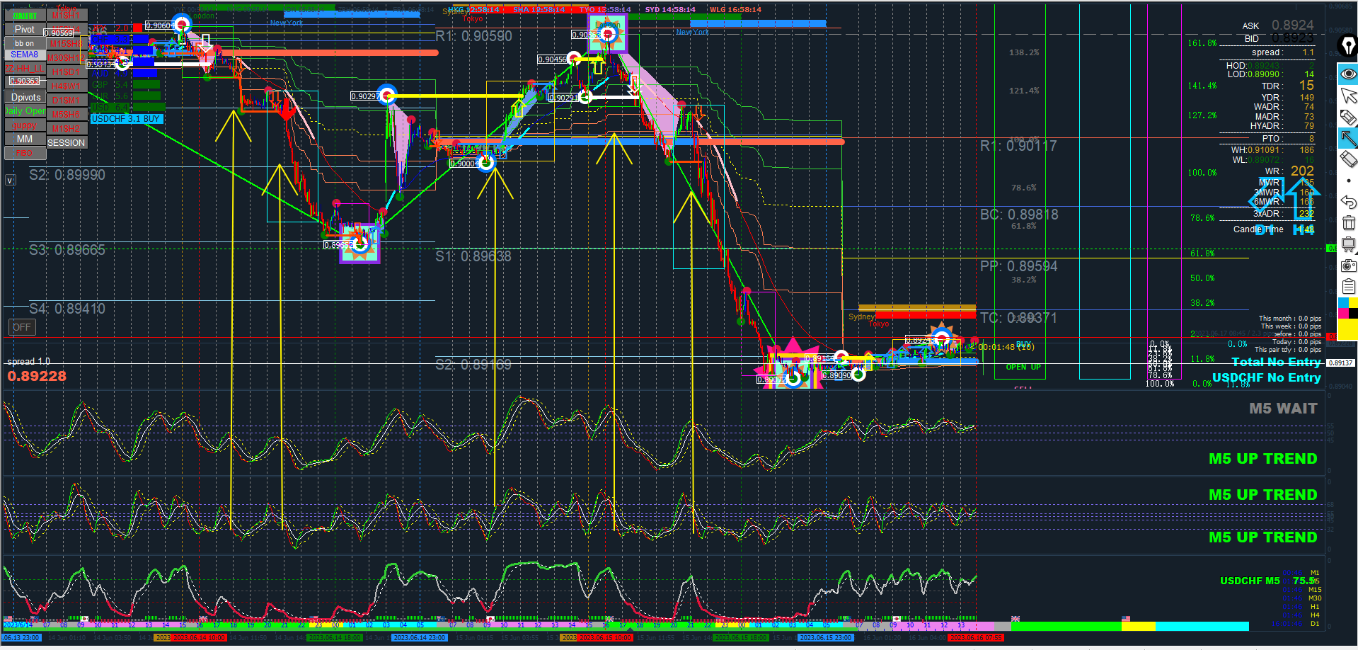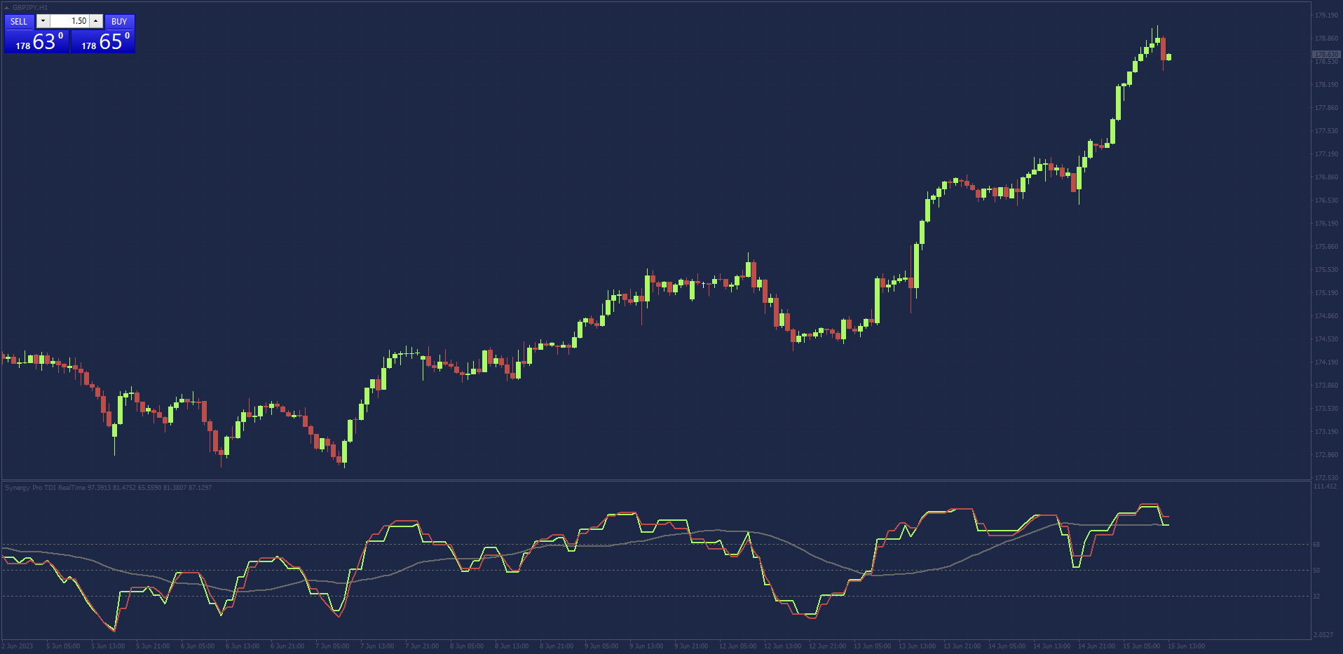 3. TDI Slow RSI Market Base Line is not between 45-55. This will be a signal that the trend will last longer