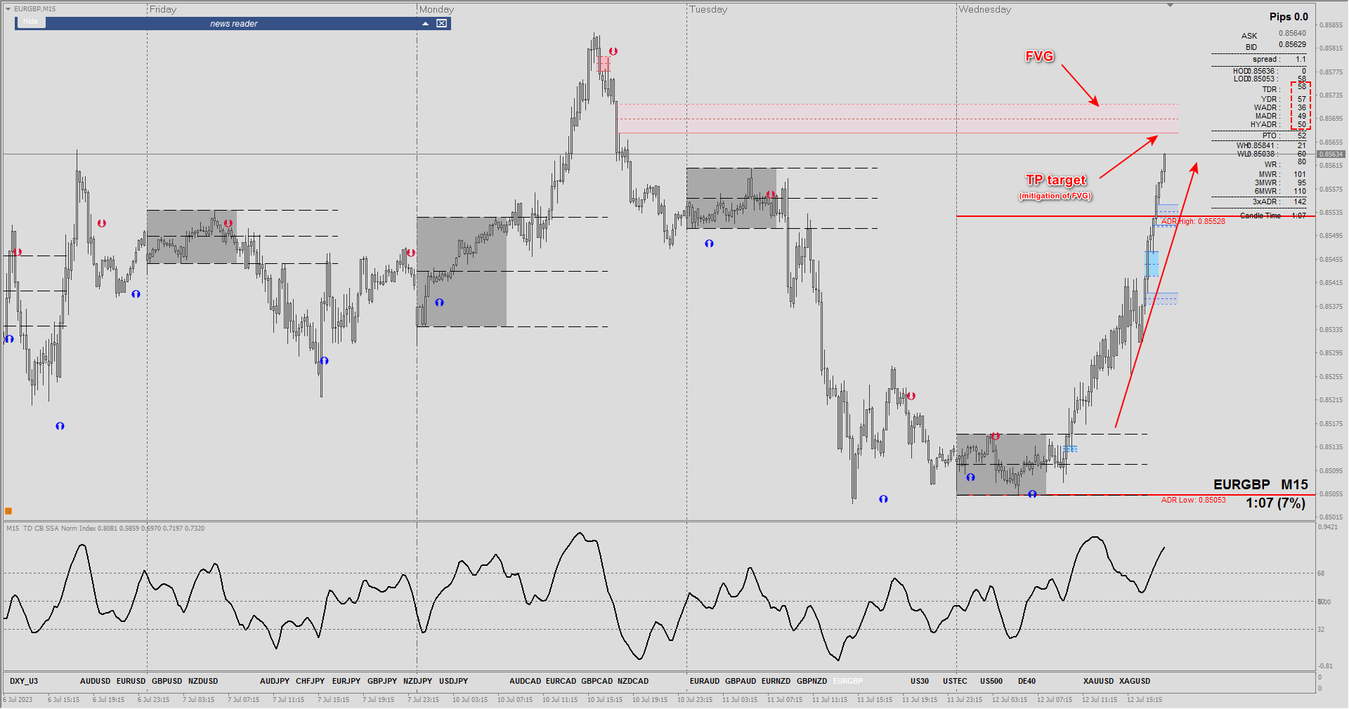 Plot Session / Trading Periods - Sydney / Tokyo / Frankfut / London / NewYork with option to display session range in points, HiLo value and show open price.