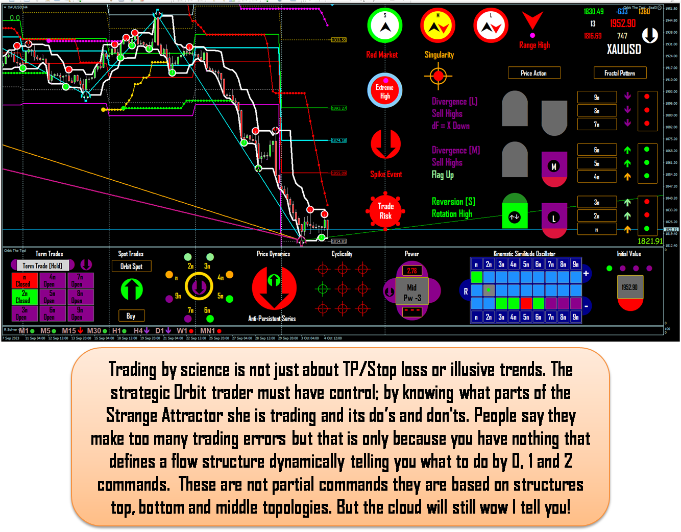 So what does it do? The Zero Command informs you in laminar flow or in fact in any flow so that you know to a) Take Profit on you last level 1 CMD in direction. b) that You will next enter the FLE which means further chaos intermittency and this means in the math what is called Initial Conditions (the butterfly effect), which I do not trade ---> trades too fast (translation speeds are exponential in very short bursts - I do not like that kind of price action. Regardless there are cowboys that will trade it because it is tradable by Orbit and quick money can be made in very tight risk free spaces.
