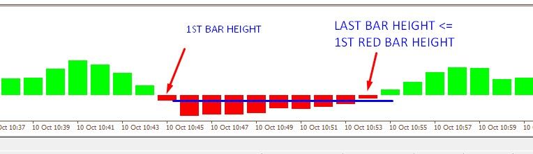if the when histo bullish bar(s) depth is <= 1st histo bulish bar height