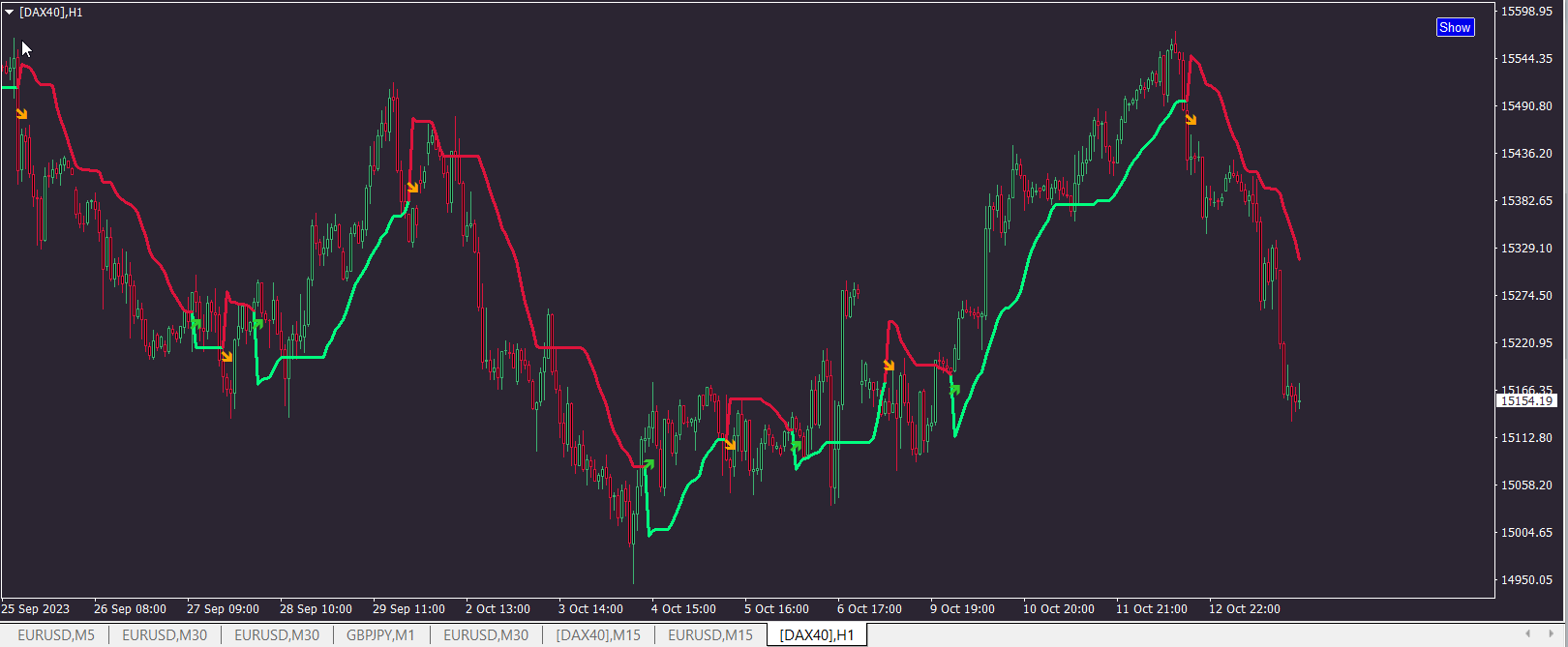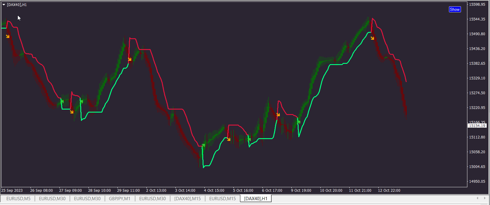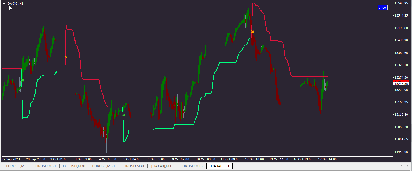 I attach 2 photos of Dax index with supertrend, taken now on 1 h timeframe, one with heiken ashi close, one with normal close.