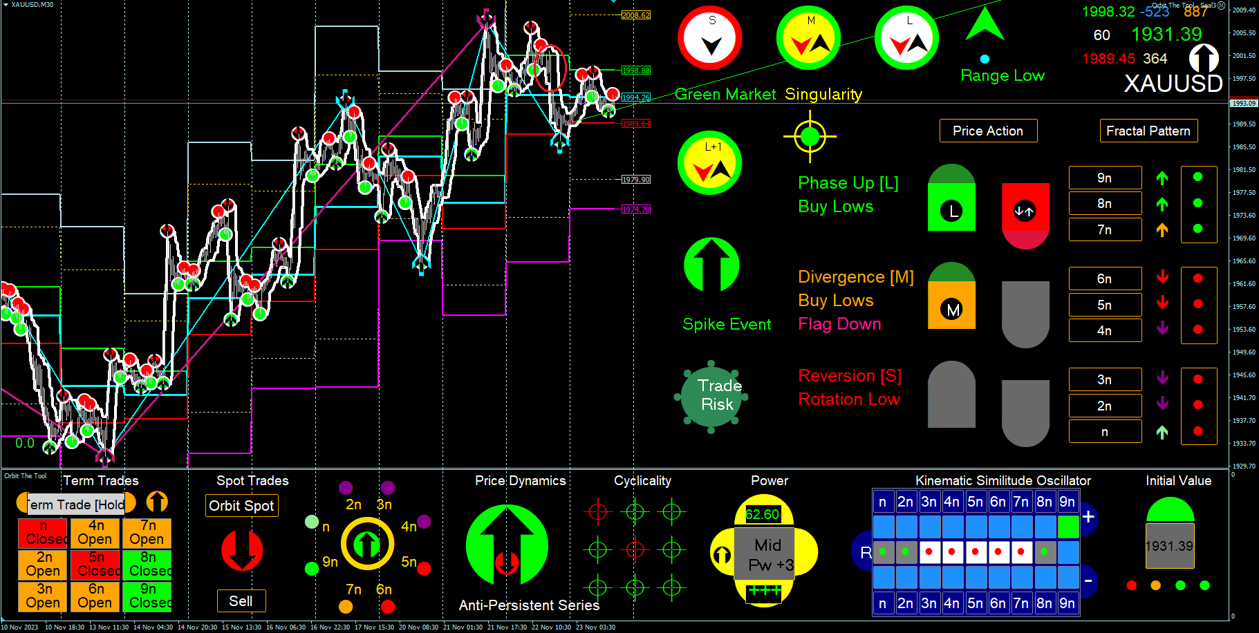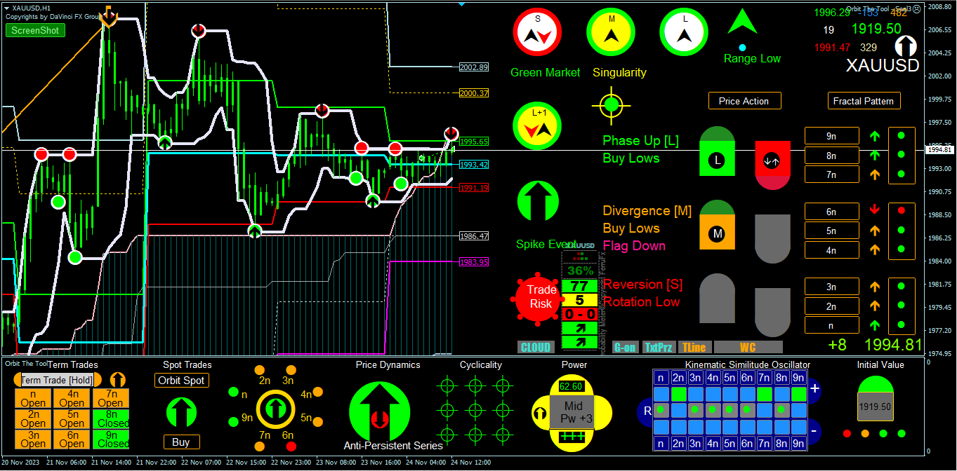 This post discloses a problem what I see with the screenface. When you are not in front of your screen or can't watch the charts at the moment when n-2n is at -kso amplitude in a FLE or retracement before n-2n move again to R or higher, you will never know what was going on and if the entry criteria was met or not. What I want to say is that by comparison with normal oscillator indicators, the orbit oscillator model has no visual history on which you can base your decision.
