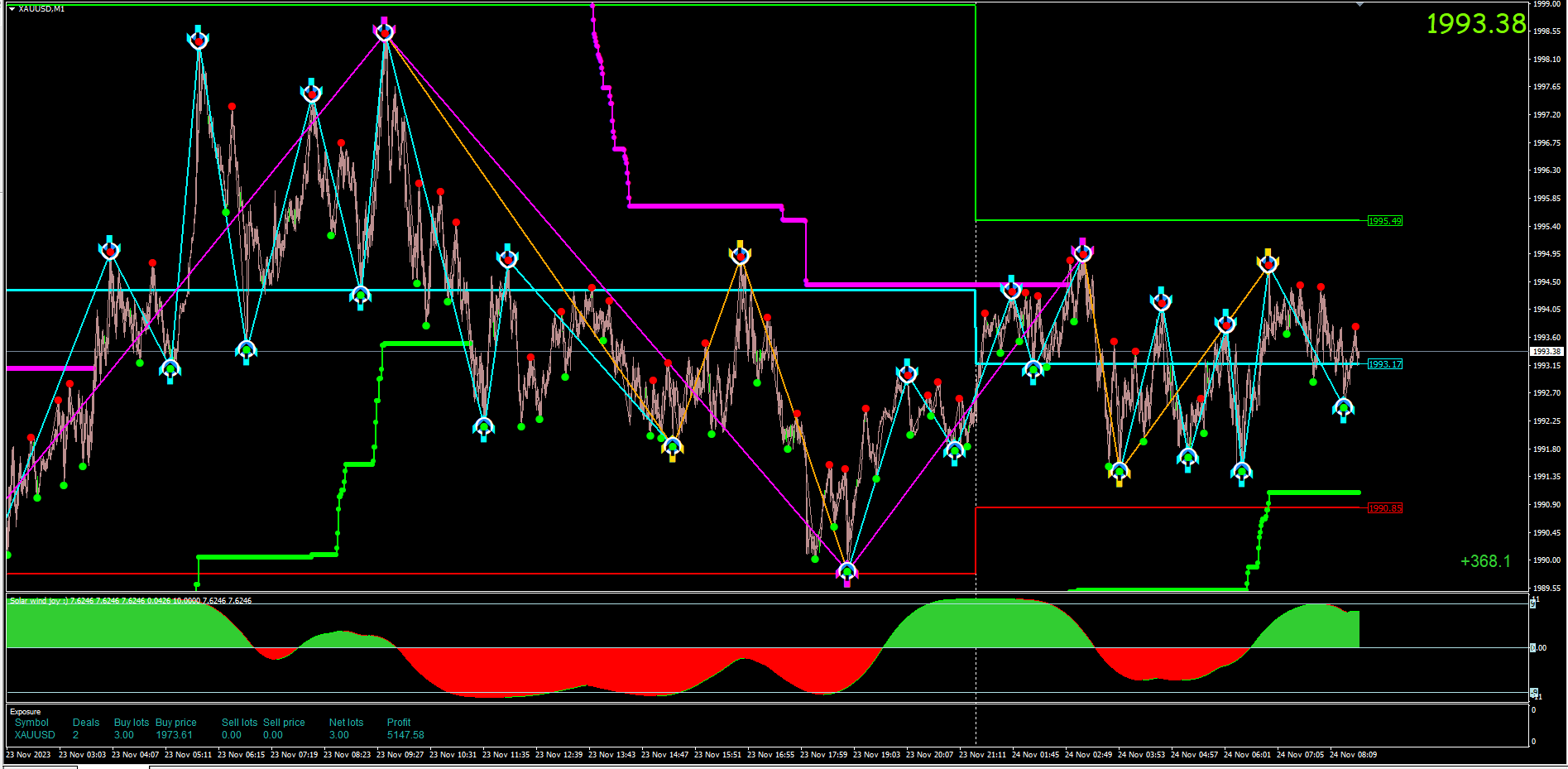 2112Yes you suggest some kind of repainting occurred. Not something so frequent I can say I understand or even explain and would only suspect that by some kind of lateness in the tool updating or something that happened. But as is, it is the correct match for 6n or H4 given M30 = M, H1 = G, H4 = A. I would work with that and not bother too much about the repaint you suggest occurred.ForexFux wrote: Fri Nov 24, 2023 2:44 am I think I know now what I did. I was analyzing the 30m gold chart not the 4h.