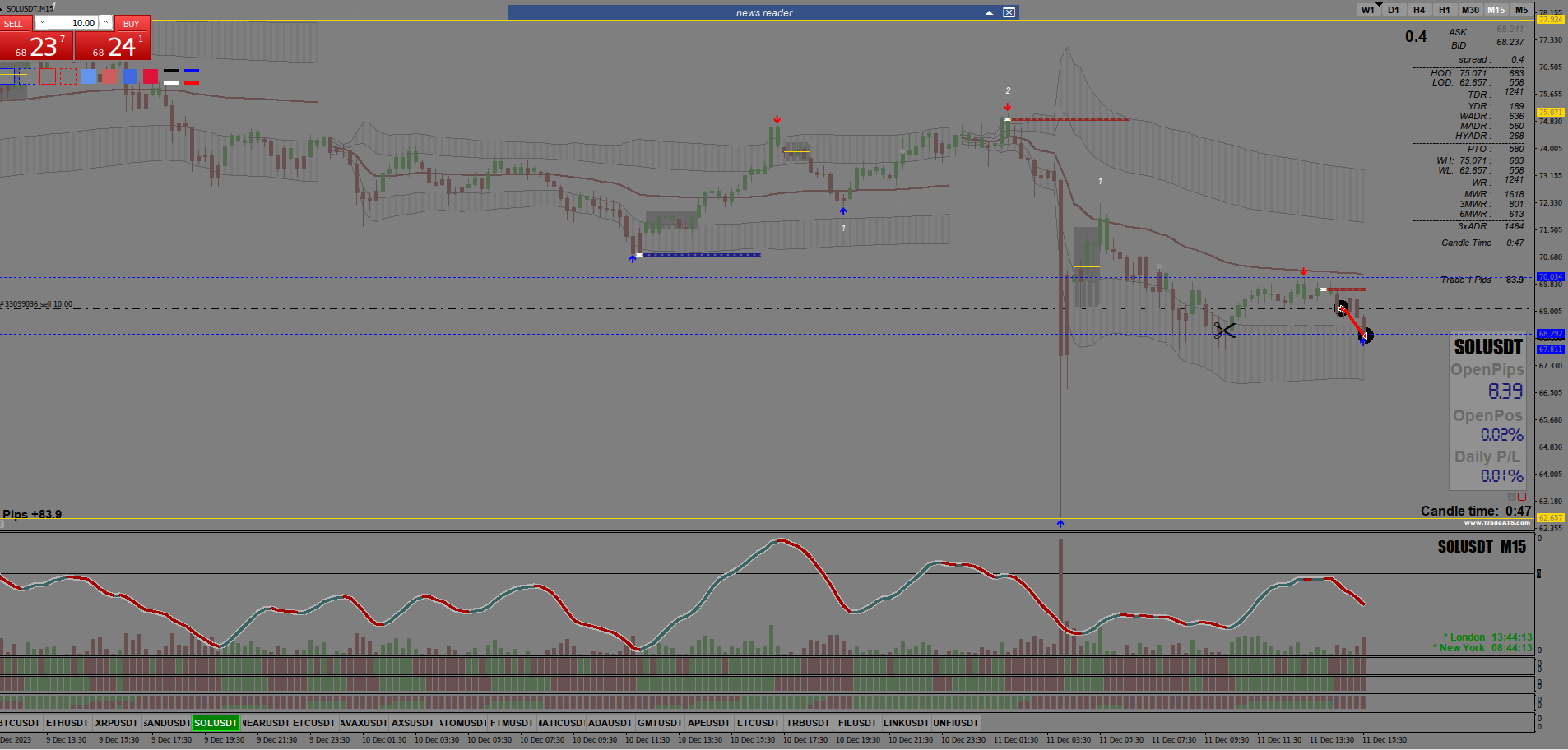 2881Greetings friends. I share my achievement with you. Today my input is almost accurate. I found a forex screener and tried it on cryptocurrencies. With the help of the screener and the Trading System, I caught a cool wave. Thank you sir for your masterpiece!