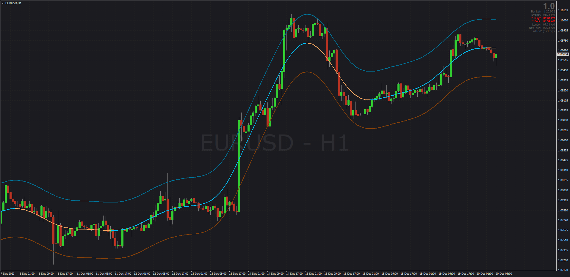 Ehlers's Early Onset Trend uses Ehlers's Roofing Filter (High-pass + Super Smoother filter that's normalized) to create a complex code to eliminate lagging signals. Thanks to Mrtools & ixion700 a new, updated version with MTF & more is available, here: post1295529624.html#p1295529624